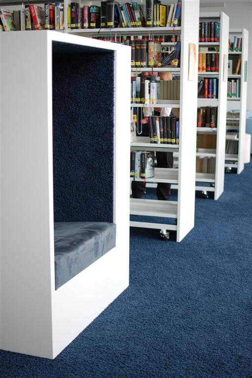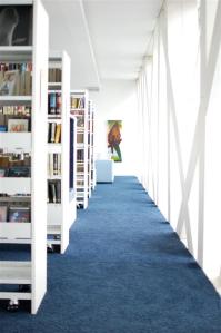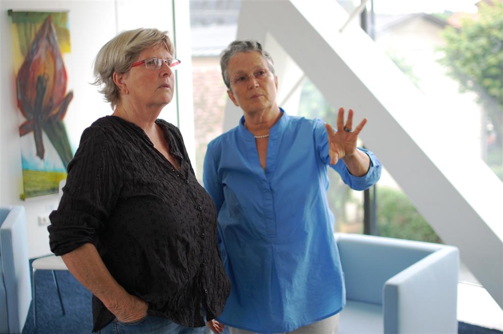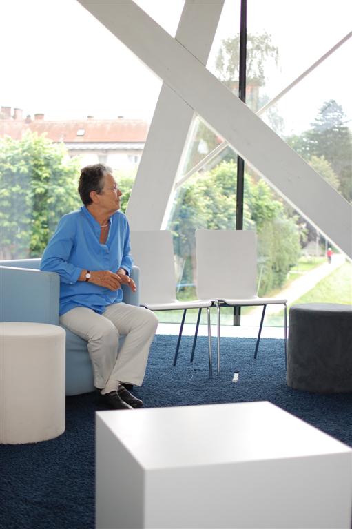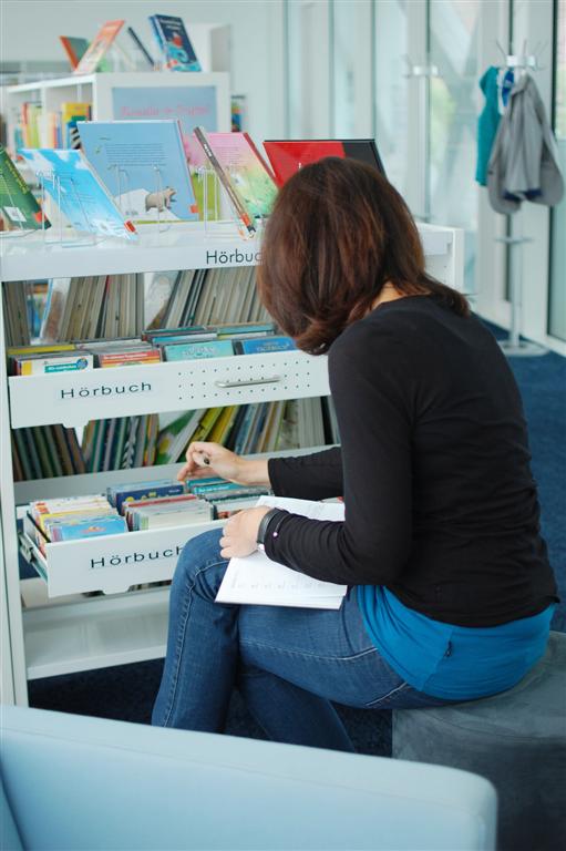 Unser Ausflug hat uns im Juli in die Bücherei Grieskirchen geführt. Das moderne Gebäude im Stadtzentrum wurde 2010 für die Landesausstellung errichtet. Die Nachnutzung war von Anfang an klar – und Voraussetzung für den Bau: Dort kommt die Bücherei hinein, die bis dahin in zwei aus allen Nähten platzenden Kammern untergebracht war, erzählte uns die Leiterin Erdmuth Peham. Beeindruckend ist zum einen die architektonische Erscheinung des freischwebenden Obergeschoßes und seine geschmackvolle Ausstattung: Die großzügige Verglasung macht den Raum hell und luftig, die weiße Holzkonstruktion, die weißen Möbel, blaue Farbtöne und rot-orange Akzente sorgen für ein stilvolles, gemütliches Ambiente. Eine tolle Idee sind die Sitznischen – Rückzugsorte zum Schmökern und CD-hören. Faszinierend ist auch, wie diese durchdachte Vision Wirklichkeit wurde: Dazu braucht es offenbar nicht nur viel Geld, sondern auch viel persönliches Engagement und dementsprechendes Durchhaltevermögen.