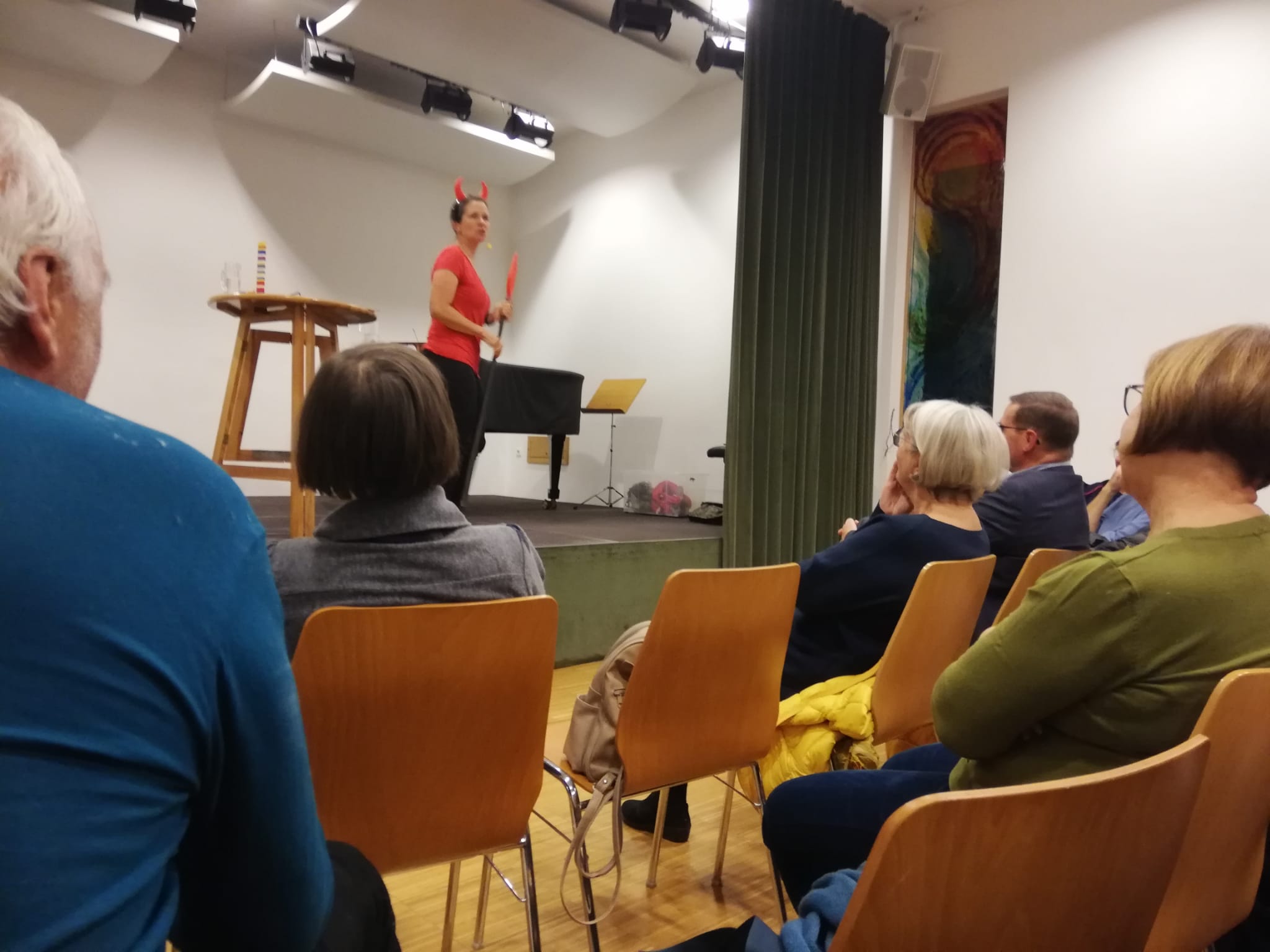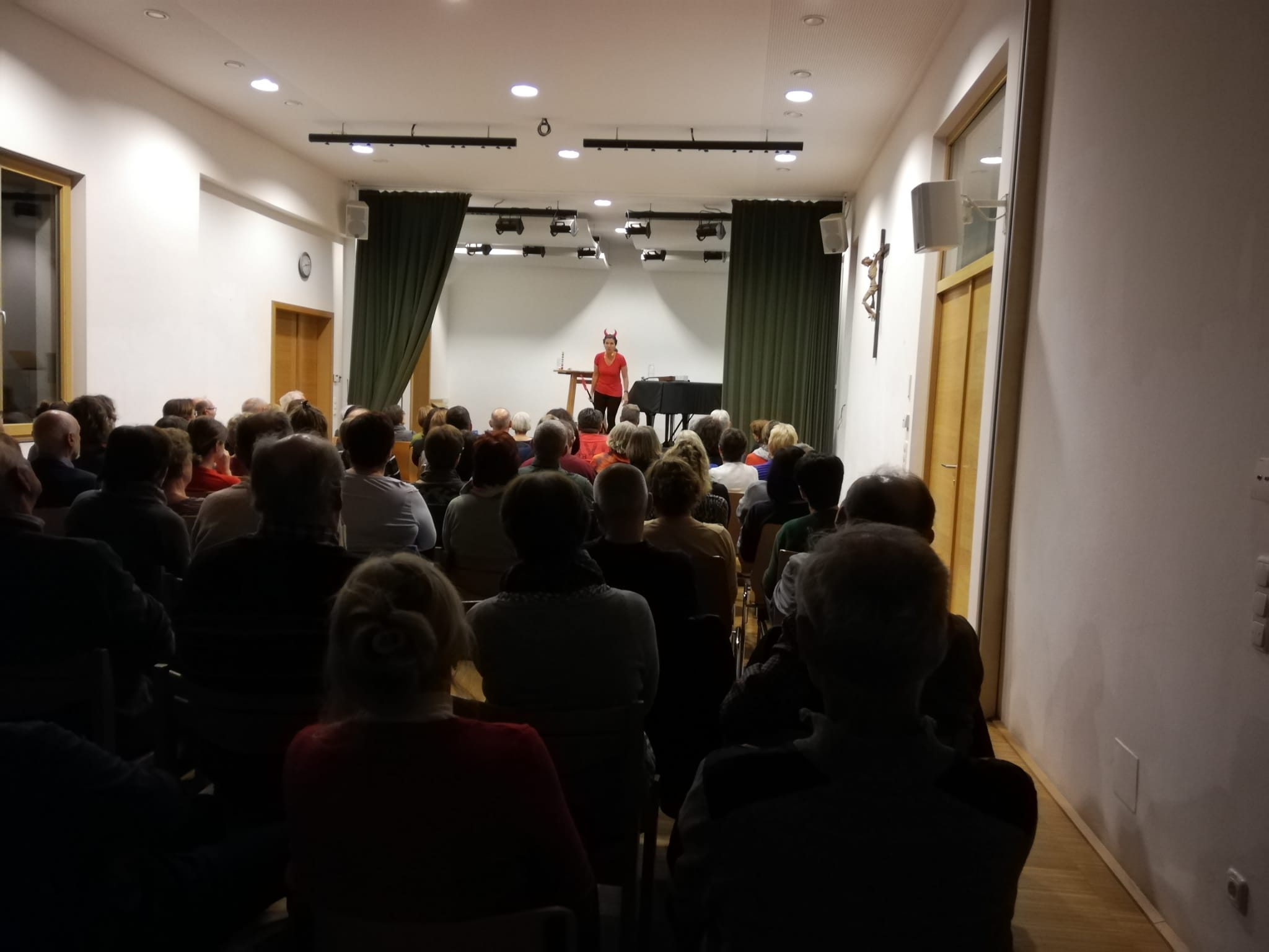 Mehr als 80 Personen lauschten auf und lachten über Tiefgründiges und Überraschendes das die Kabarettistin in Themen wie Beliebtheit von Ordinationen, Befindlichkeiten der Kirche, die Biotope Himmel und Hölle und unnützes – aber überdenkenswertes – Wissen präsentierte.