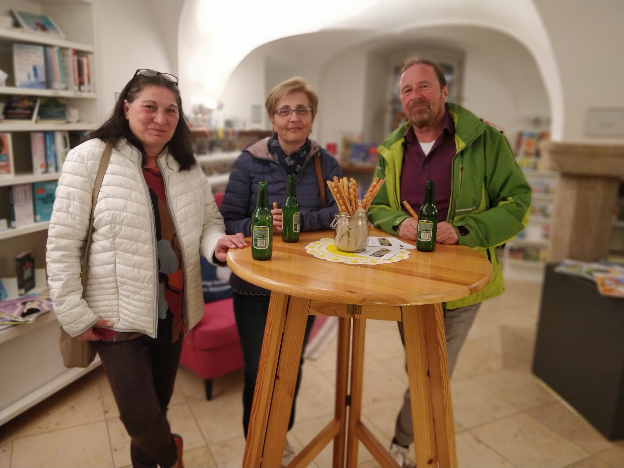 Nach einer eindringlichen Vorstellung von Maxi Blaha gemeinsam mit dem Musikessemble PHACE in der Pfarrkirche Bad Zell über Hanni Rittenschobers Leben voller Entbehrungen, ging es weiter zu einem zwanglosen Meet & Greet mit den Künstlern in den Räumen der Bücherei.