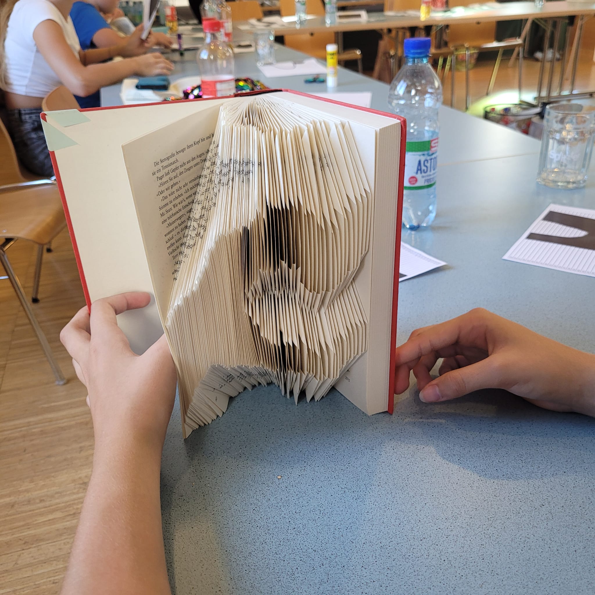 Der Workshop war eine kombination von Lernen und Kreativität. Die Jugendlichen tauchten in die Welt des Bücherfaltens ein, meisterten die Kunst, Seiten in atemberaubende Formen zu verwandeln. Sie verliehen den Büchern nicht nur neue Formen, sondern auch ihre persönliche Note auf den Covern.