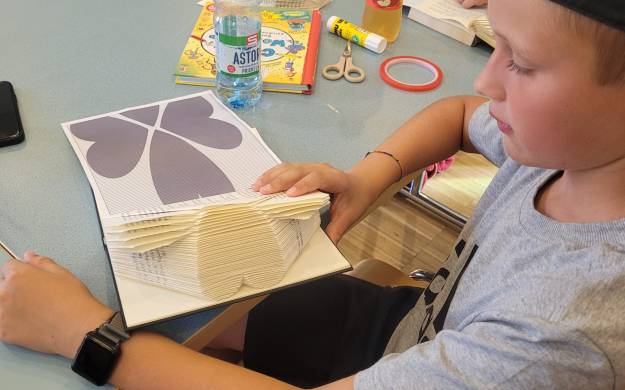 Der Workshop war eine kombination von Lernen und Kreativität. Die Jugendlichen tauchten in die Welt des Bücherfaltens ein, meisterten die Kunst, Seiten in atemberaubende Formen zu verwandeln. Sie verliehen den Büchern nicht nur neue Formen, sondern auch ihre persönliche Note auf den Covern.