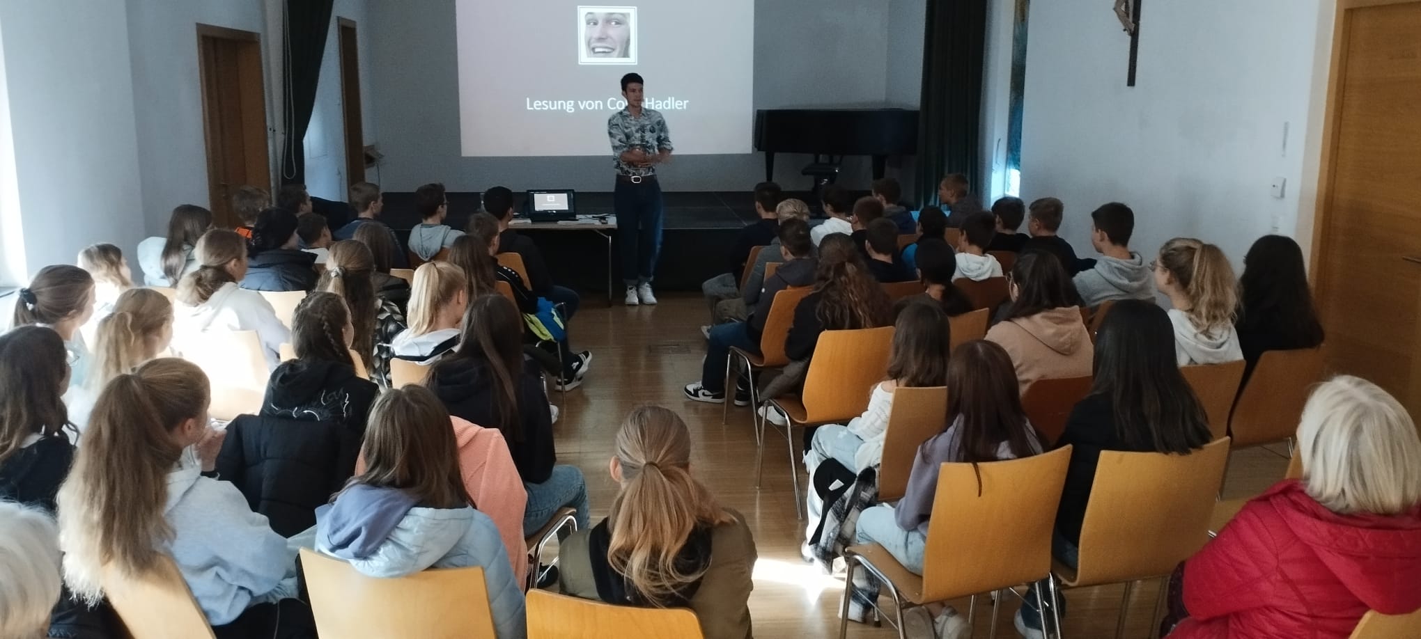 Am Donnerstagvormittag haben wir die beiden 4. Klassen der Mittelschule Bad Zell zu einer Lesung in die Bücherei eingeladen. Der gebürtige Grazer Buchautor Colin Hadler hat sein aktuelles Buch „Exilium“ vorgestellt. Die Schüler haben sich vorab bestimmt gedacht „Oh, nein nicht wieder so eine langweilige Lesung!“. Doch langweilig war sie keinesfalls, mit viel Humor und Charme hat Colin Hadler den Jugendlichen eine kurzweilige und lustige Lesung dargeboten.