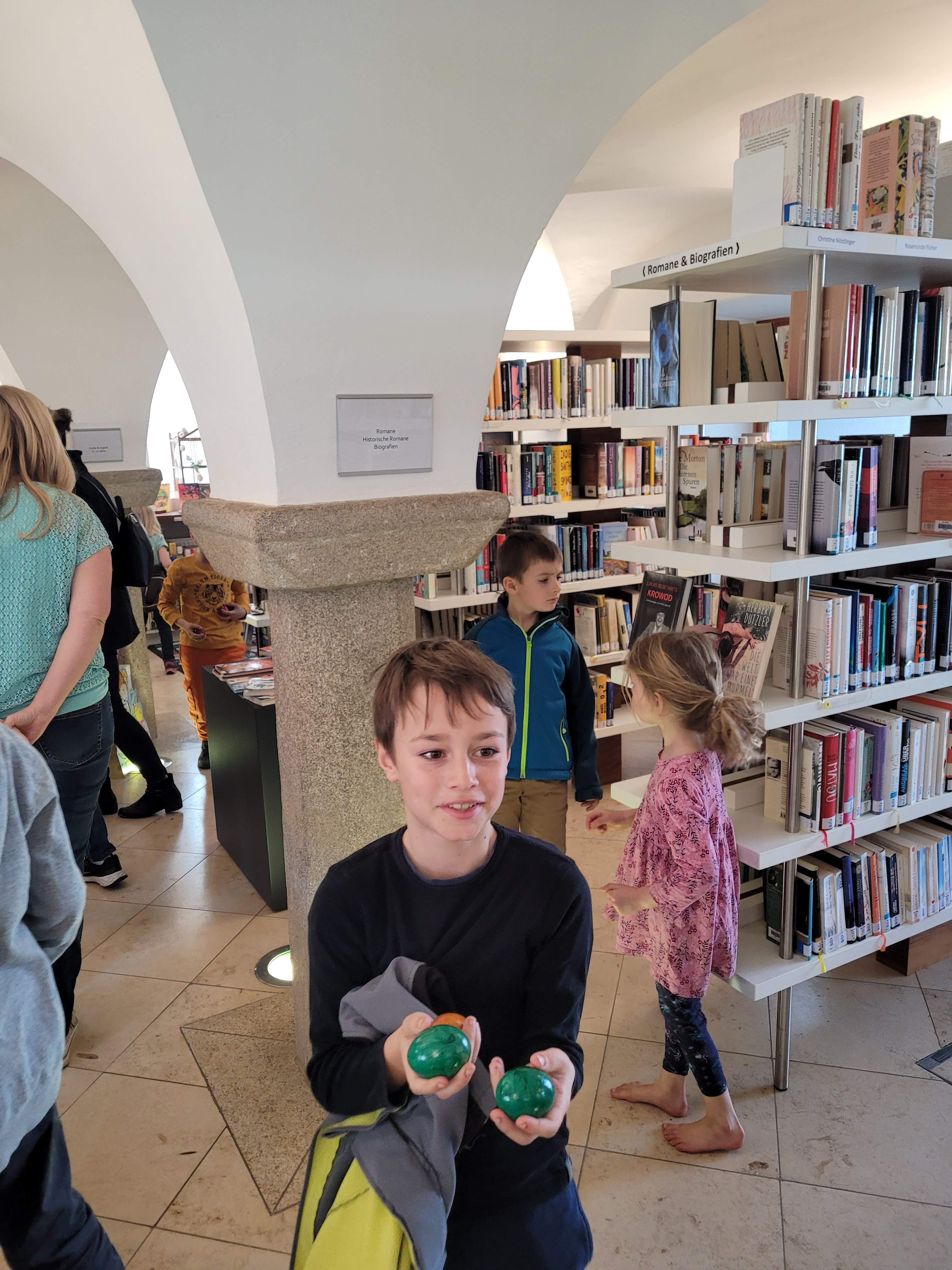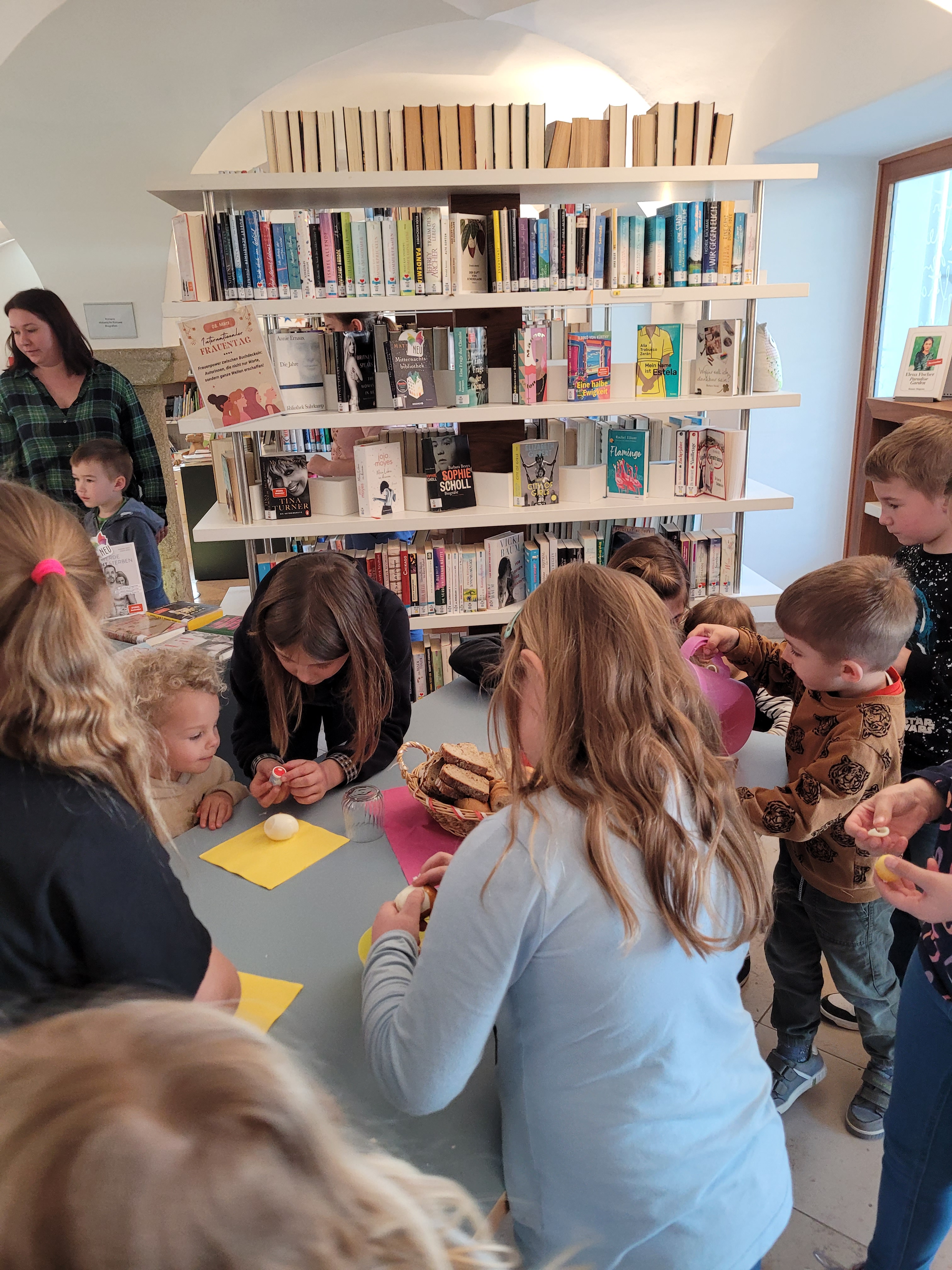 Rund 40 Kinder besuchten uns heute zu unserem jährlichen Osterbilderbuchkino. Nach drei ganz unterschiedlichen Geschichten, hieß es gemeinsam 60 gut versteckte Eier in der Bücherei wieder zu finden! Gottseidank ist das auch dieses Jahr geglückt! Nach zahlreichen spannenden Eierpeck-Duellen, durften die köstlichen Eier vom Biohof Bart zusammen mit ofenfrischem Brot der Biobäckerei Stöcher verspeist werden.