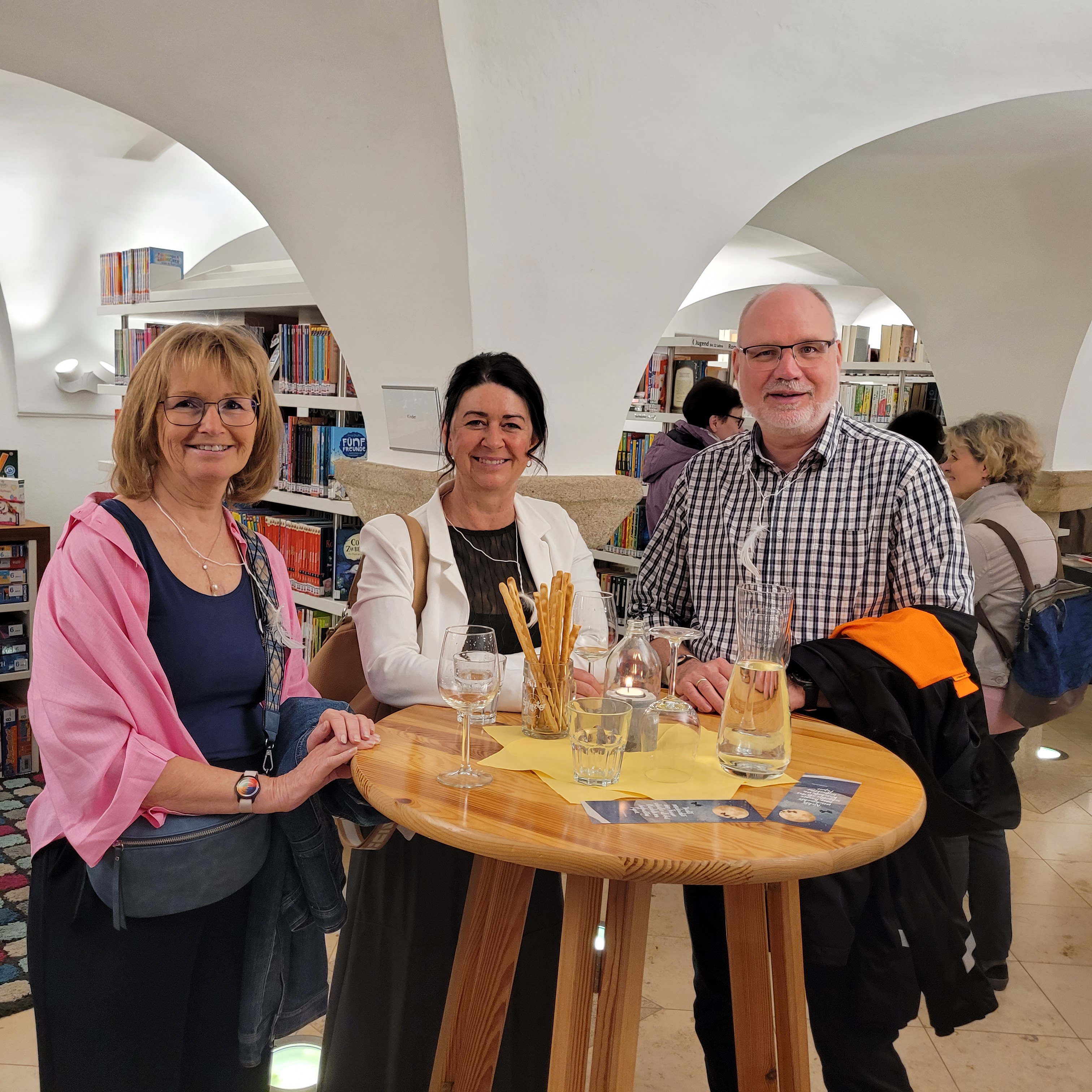 Die Lange Nacht der Biblioötheken war bei uns wirklich ziemlich lang. Bis nach Mitternacht wurde bei dem leckeren Wein der gebürtigen Bad Zellerin Gabriele Lempradl über die vorher gehörten Märchen geplaudert. Die lustigen, dummen und erotischen Geschichten wurden mit Witz und in bester Mundart von Margit Obermair erzählt. Es war sicher nicht das letzte Mal, dass wir mit dieser Kombi, die Lange Nacht zum Tage machen.