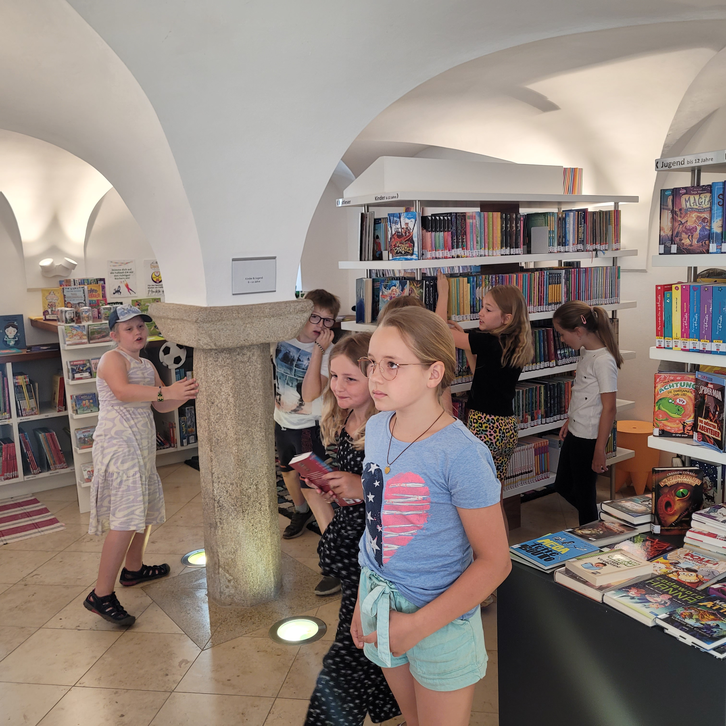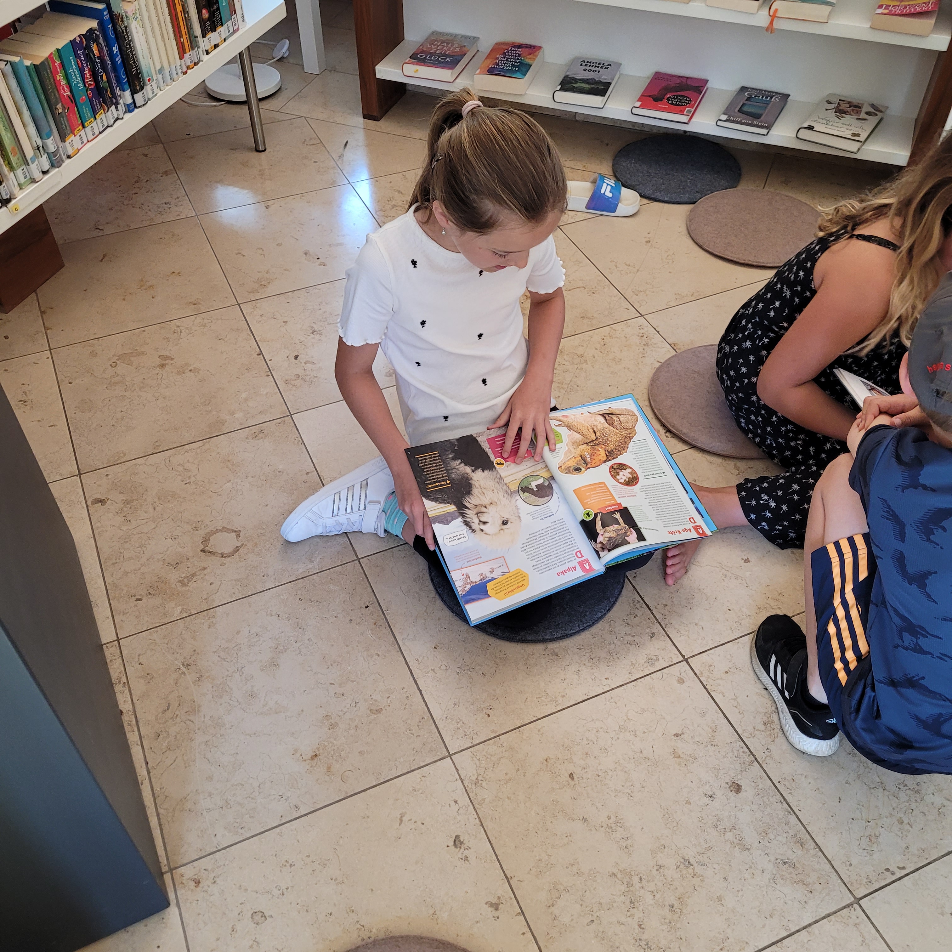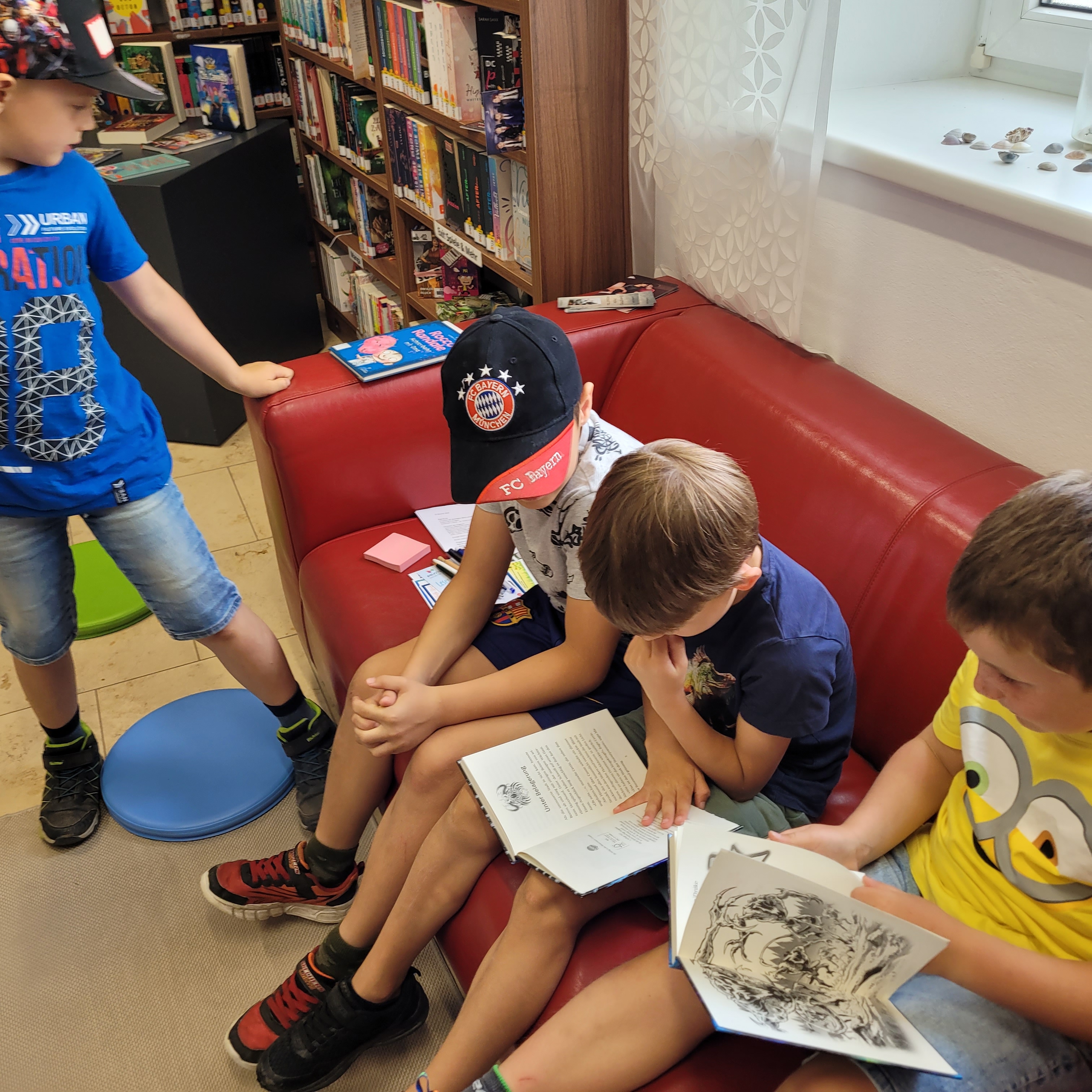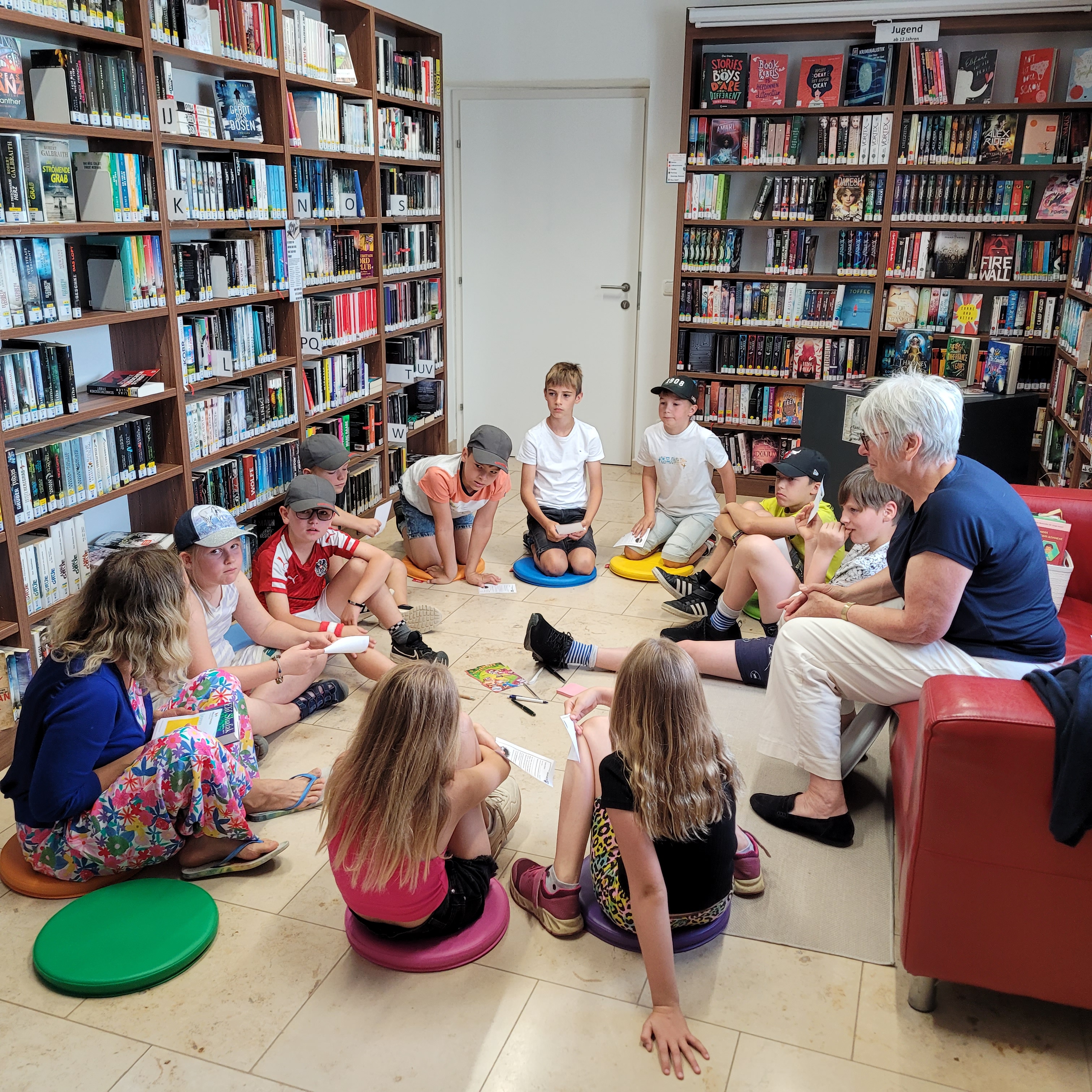 Es gab ein buntes Programm, bei dem wir unsere gratis Sommerleseaktionen und unsere Sommerveranstaltungen vorgestellt haben. Die Kinder durften sich durch unser Angebot schmökern, Bücher reservieren und zum Schluss lasen wir auch noch ein Stück aus einer unserer eigenen Lieblingsbuchserien vor.