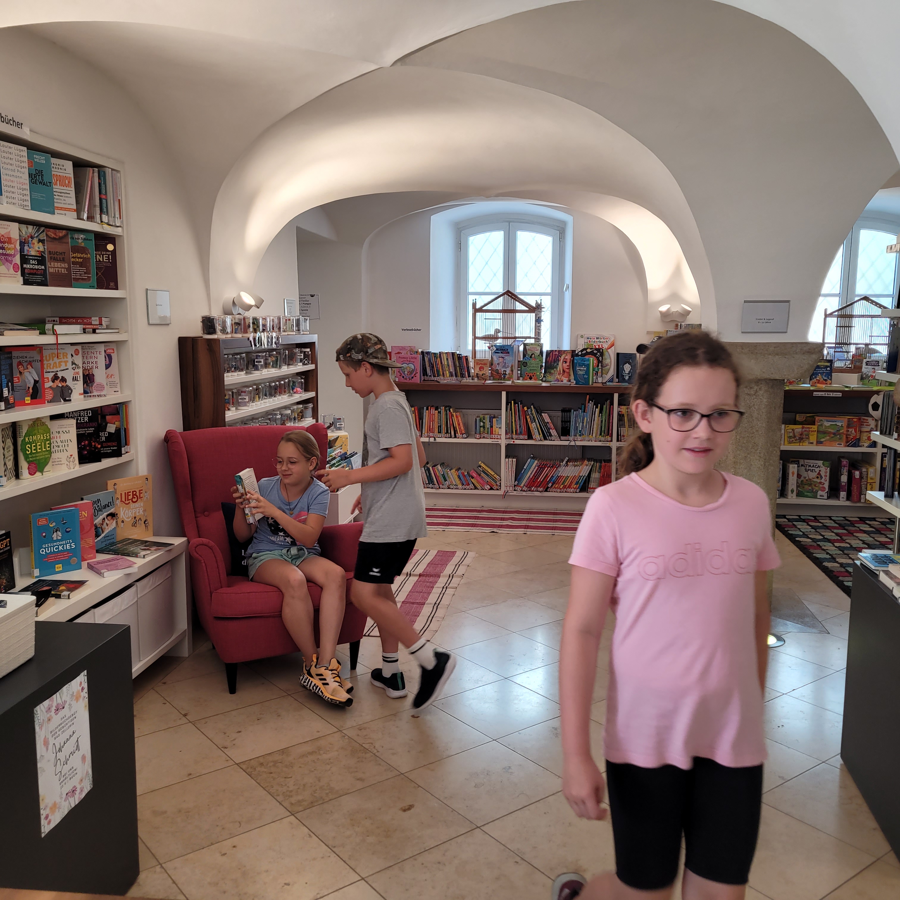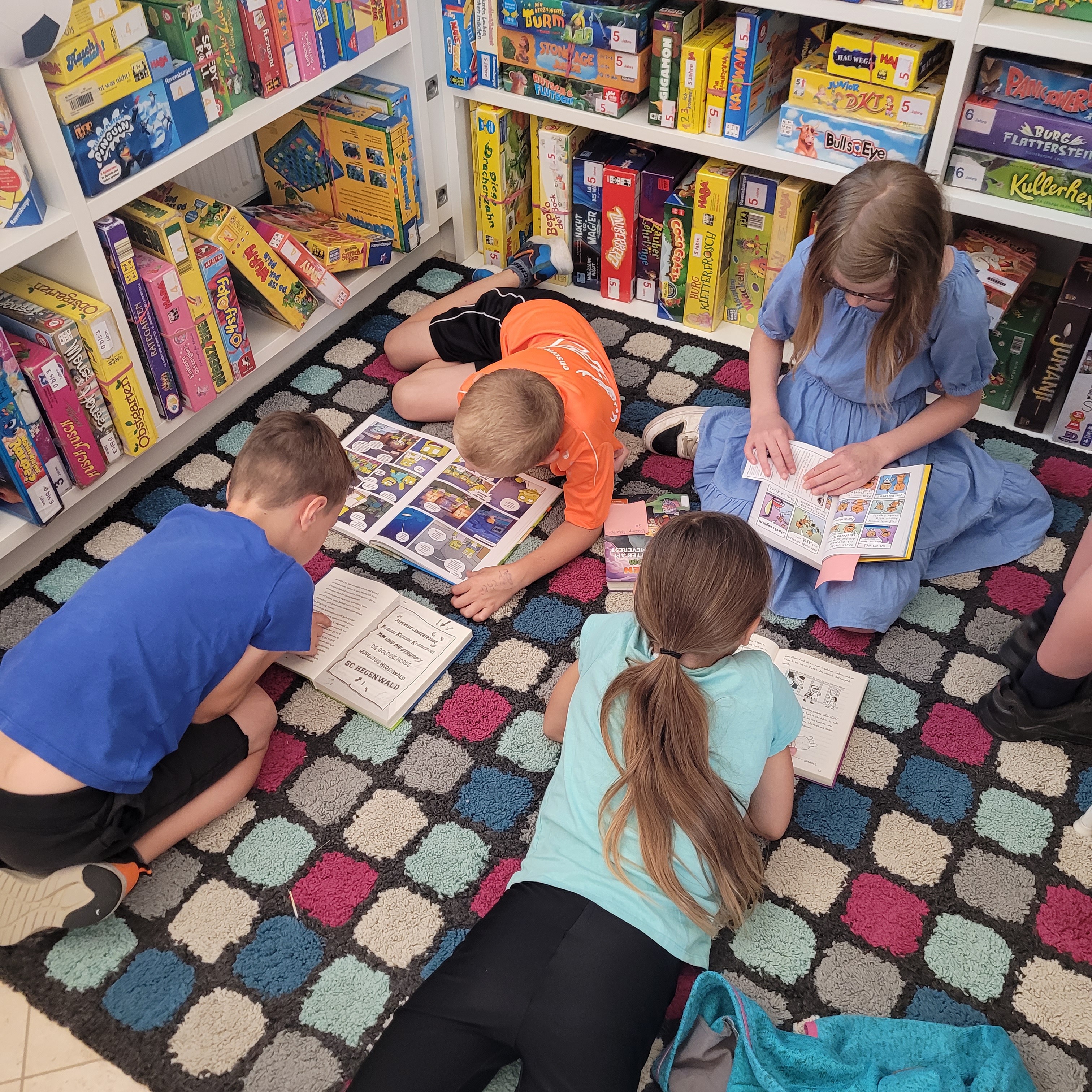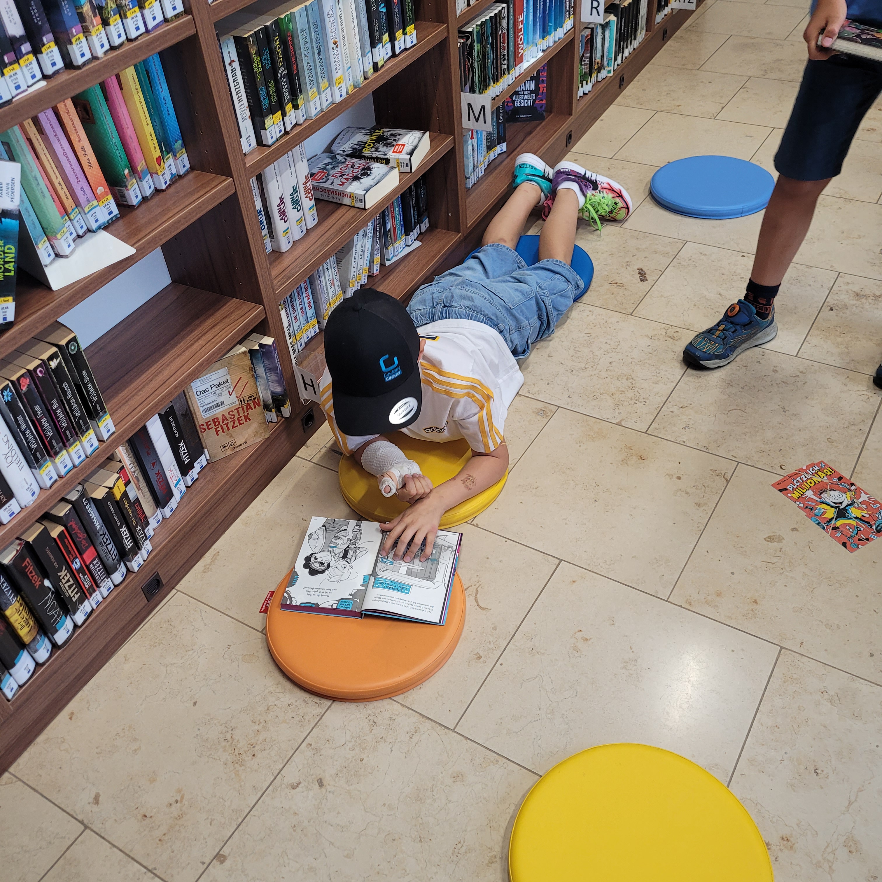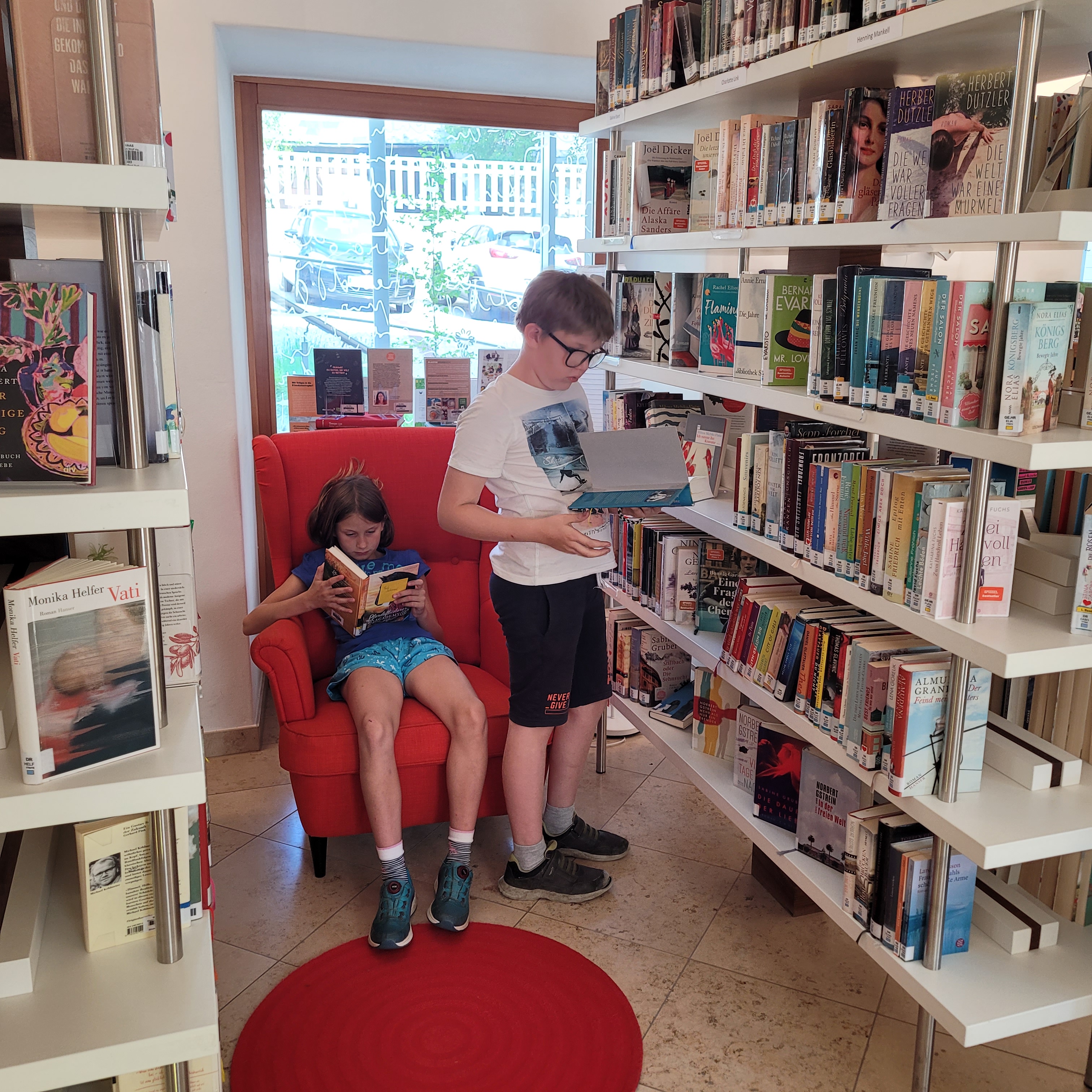 Es gab ein buntes Programm, bei dem wir unsere gratis Sommerleseaktionen und unsere Sommerveranstaltungen vorgestellt haben. Die Kinder durften sich durch unser Angebot schmökern, Bücher reservieren und zum Schluss lasen wir auch noch ein Stück aus einer unserer eigenen Lieblingsbuchserien vor.
