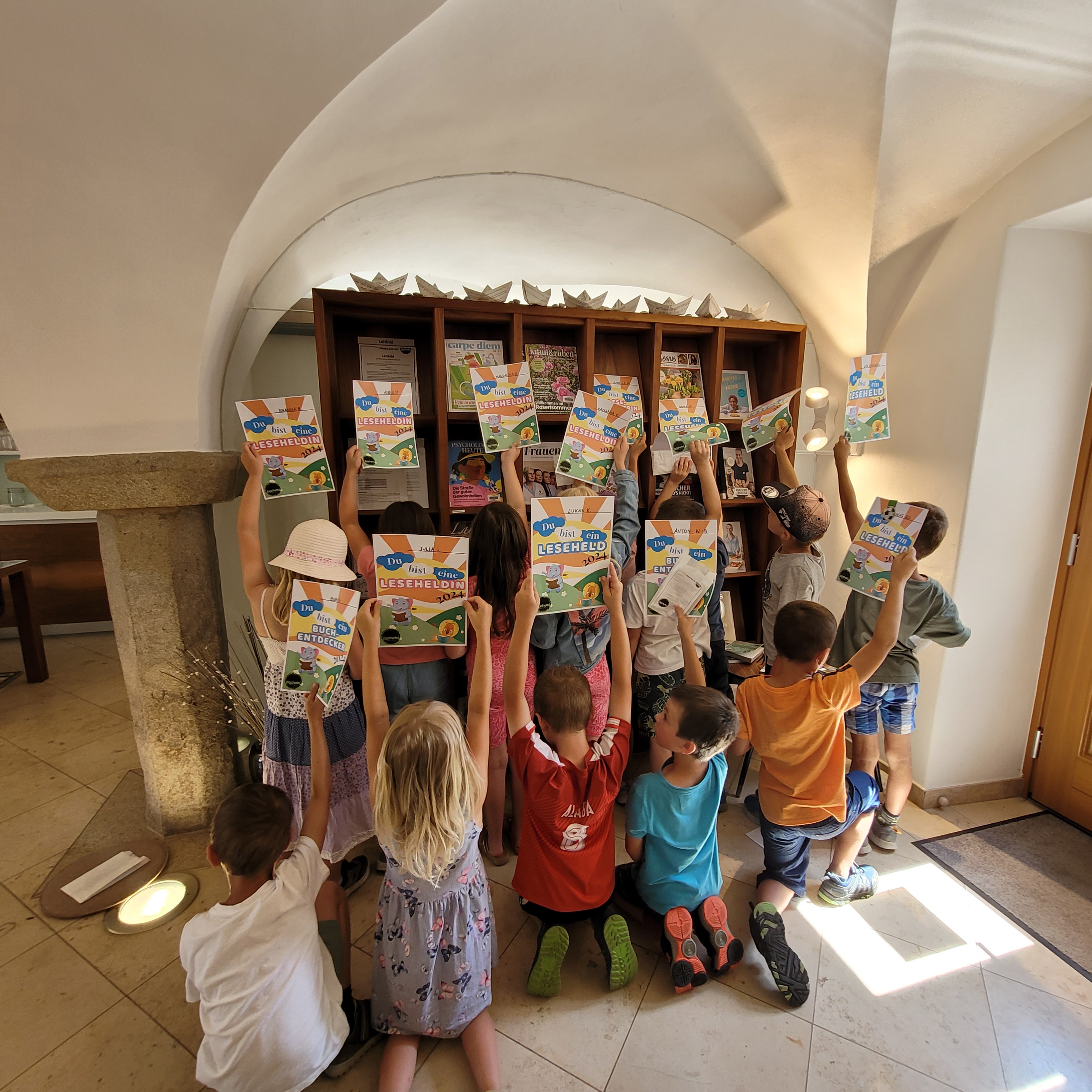 Für die 1. Klassen war es ein ganz besonders spannender Ausflug, da die fleißigen Lesepass-Leser und Leserinnen mit Urkunden und tollen Geschenksackerln inklusive Eisgutschein belohnt wurden.