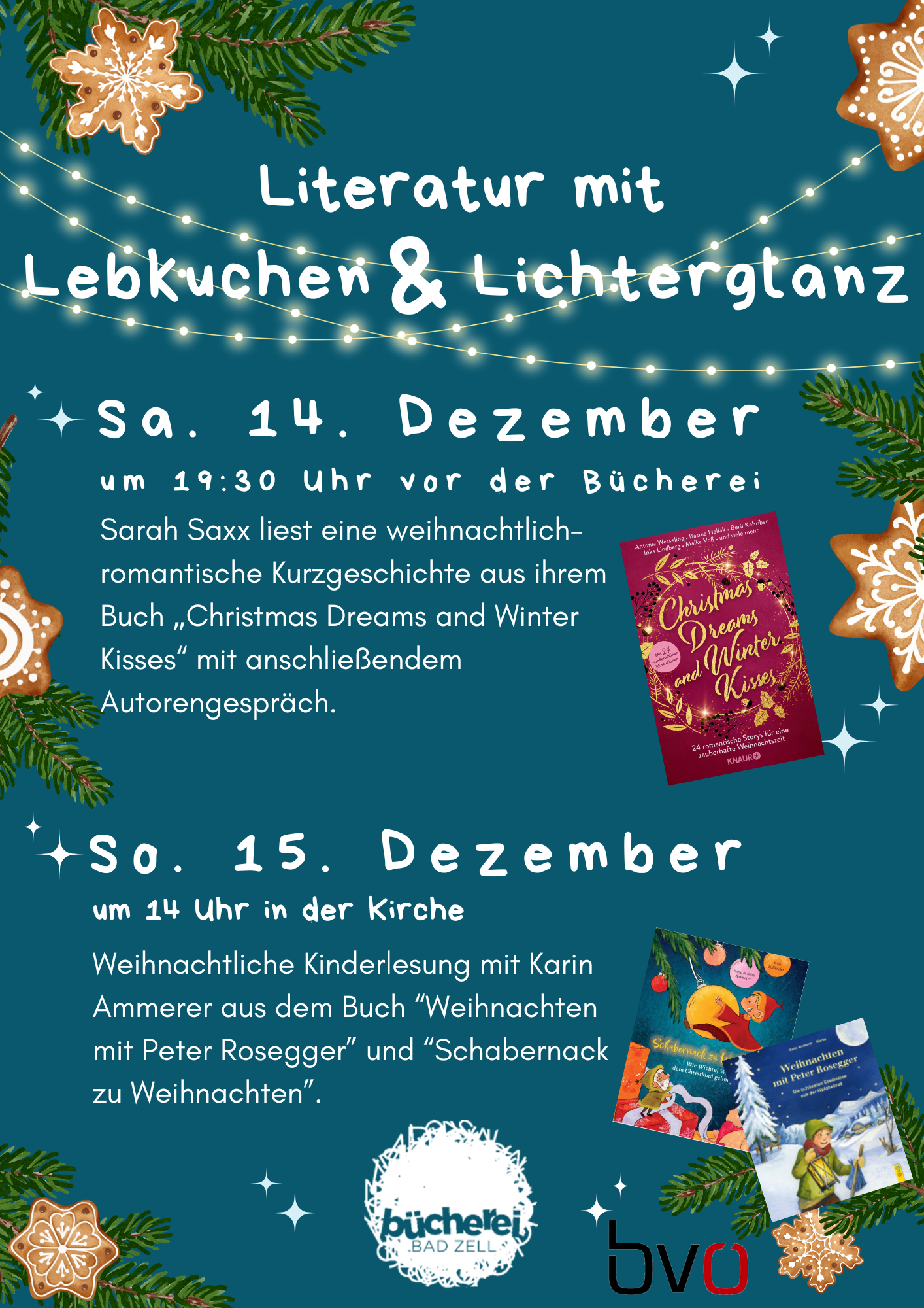 Genießen Sie den Adventmarkt mit literarischen Highlights und weihnachtlichem Zauber. Die Bücherei Bad Zell freut sich auf Ihren Besuch und wünscht Ihnen eine besinnliche Adventszeit.