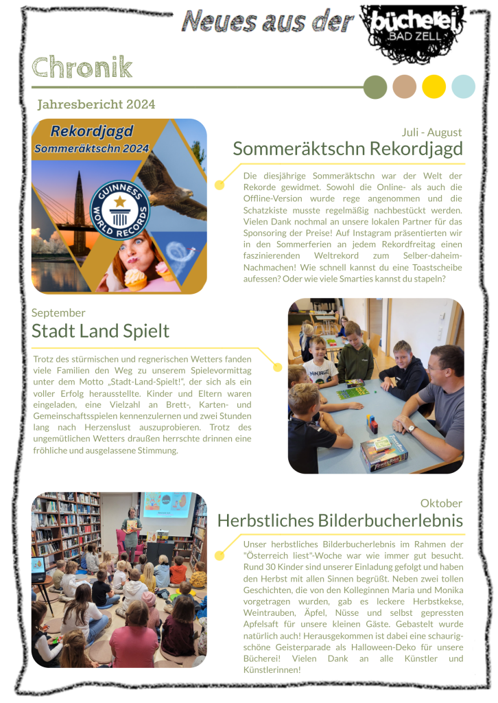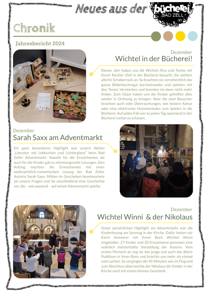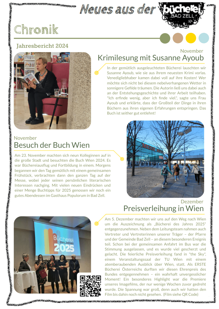 Im Dezember 2024 erlebten wir unser persönliches Highlight: Wir wurden (gemeinsam mit vier anderen Bibliotheken) zur ersten „Bücherei des Jahres“ in Österreich gewählt! Was für ein Jahr!