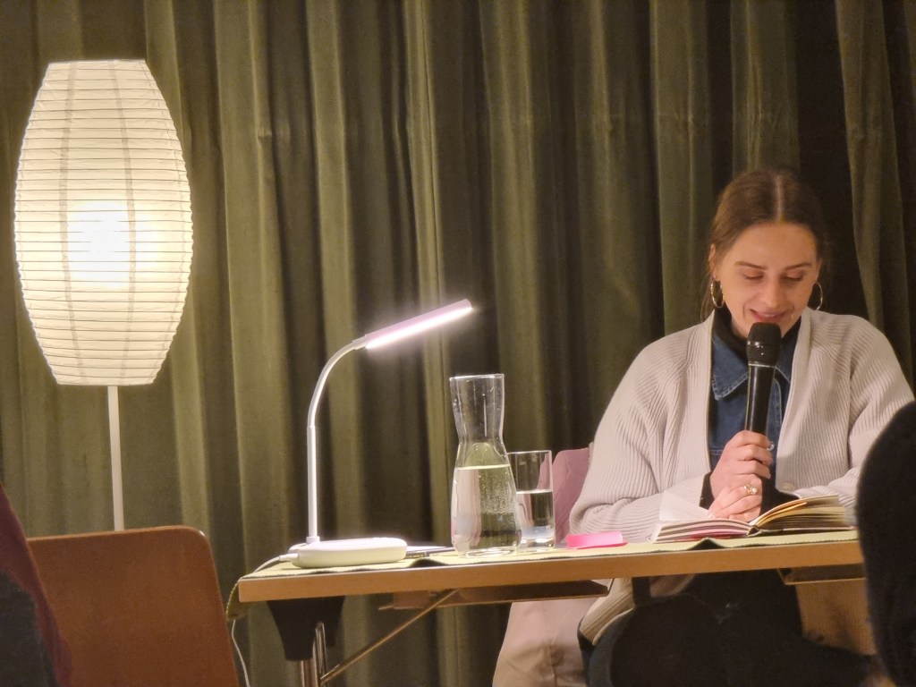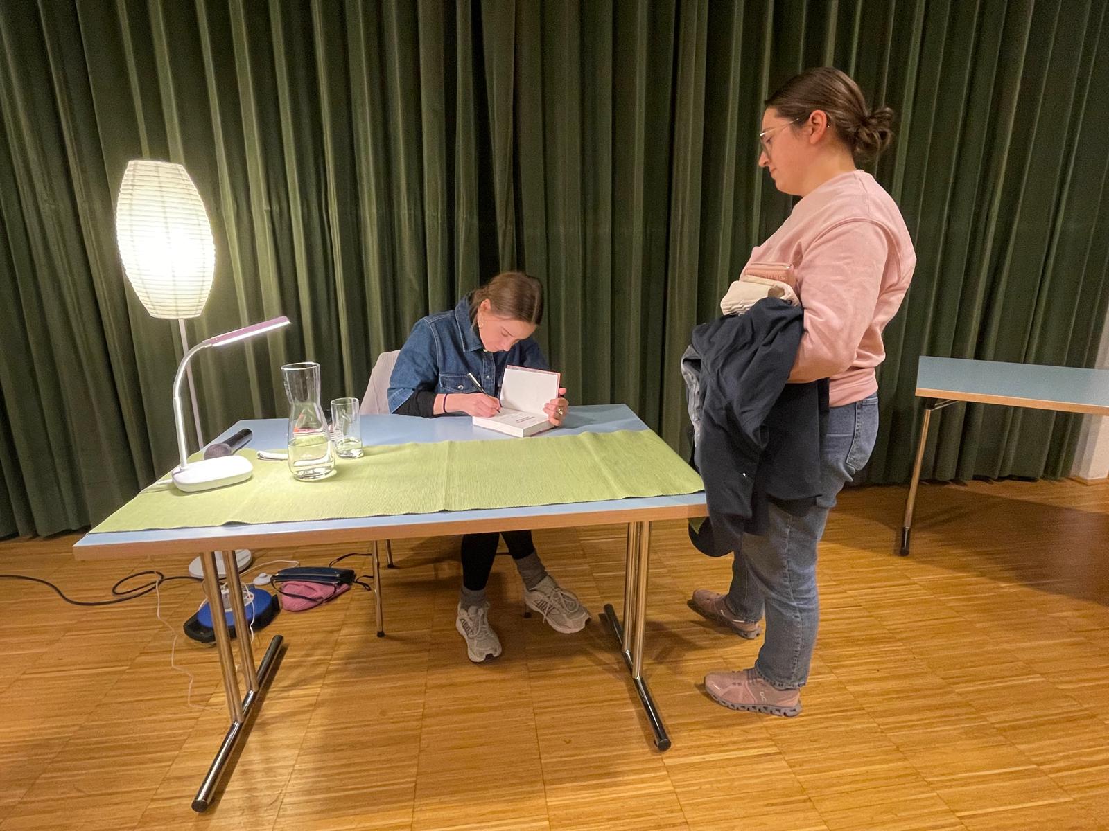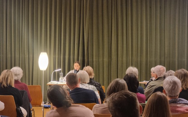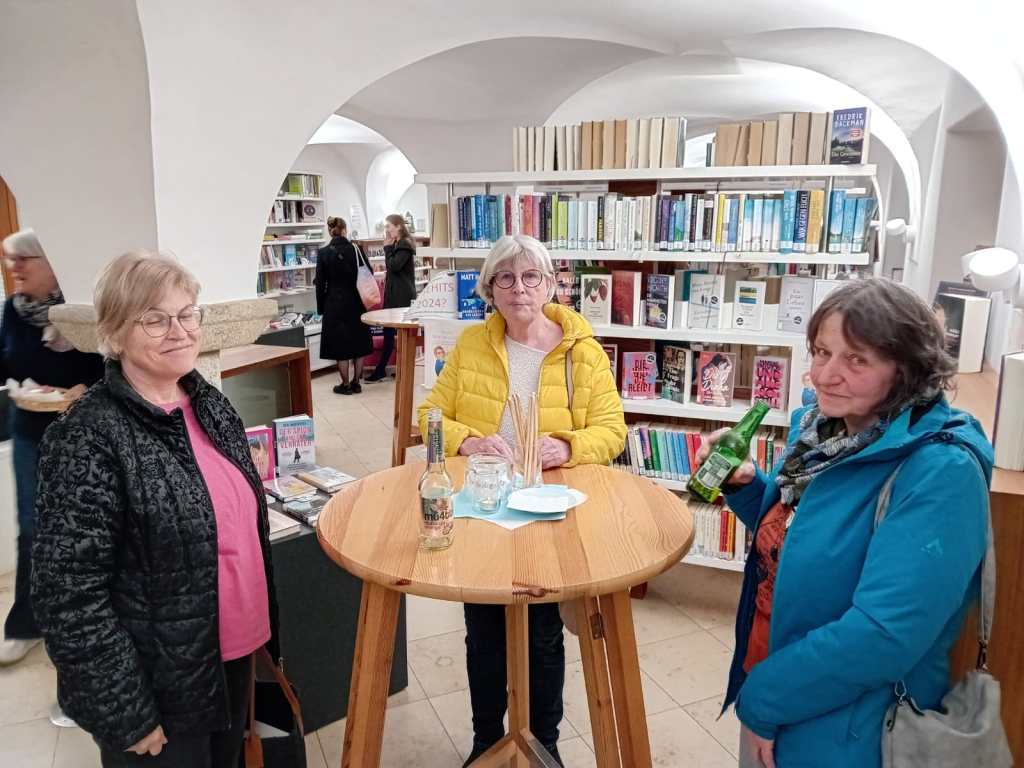 In angenehm ruhiger Atmosphäre las Eva Reisinger aus ihrem aktuellen Werk und nahm sich viel Zeit, um Anekdoten zu erzählen. Besonders amüsant war ihre Erinnerung an ihre allererste Lesung, bei der eine ältere Dame sich kritisch äußerte, weil kein Mord vorgelesen wurde. Seitdem sorgt Eva sicherheitshalber dafür, dass in jeder Lesung ein Mord vorkommt – um ihre Zuhörerinnen und Zuhörer nicht in ähnliche Ungewissheit zu versetzen.