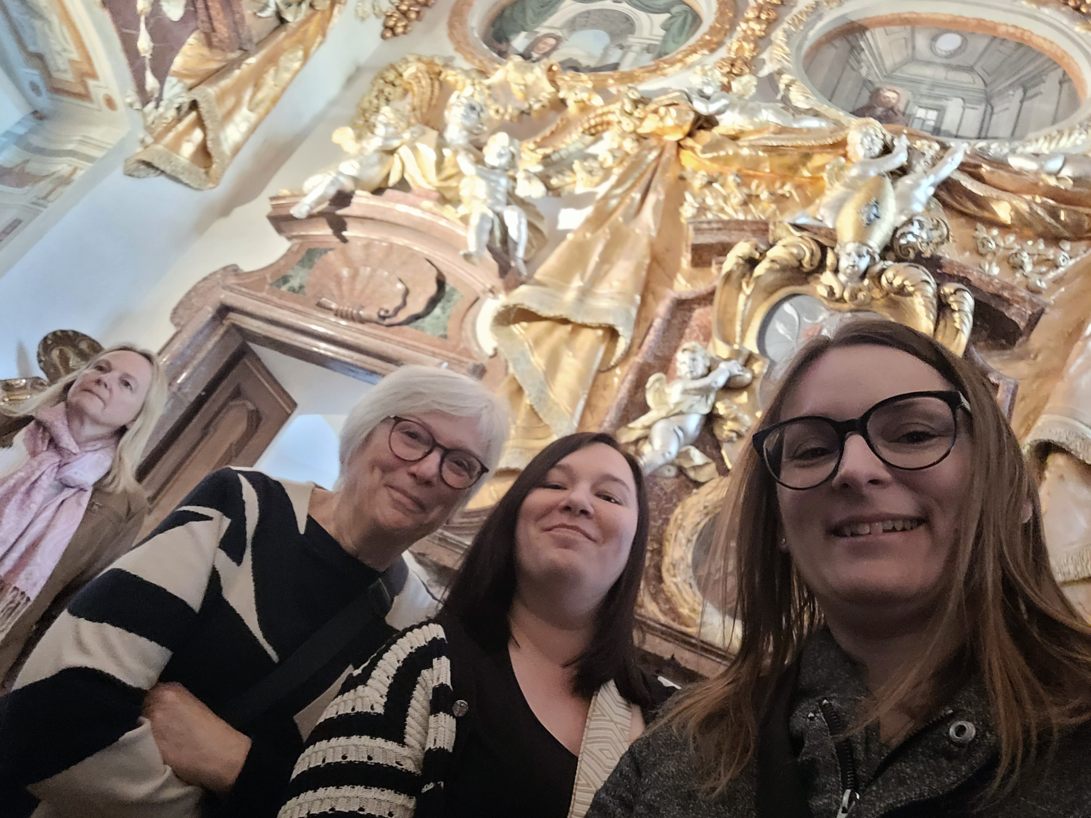 Ein besonderer Tag für unser Team: Drei unserer Bibliothekarinnen wurden im festlichen Rahmen des Stiftes Schlierbach für ihren Ausbildungsabschluss geehrt. Der Festakt würdigte ihren Einsatz und ihre Weiterbildung, bevor eine beeindruckende Stiftsführung spannende Einblicke bot. Auch Bürgermeister Martin Moser zeigte seine Wertschätzung indem er uns zu dieser Ehrung begleitete. Den feierlichen Abschluss bildete ein gemeinsames Buffet, das Gelegenheit zum Austausch mit anderen Absolvent:innen bot.