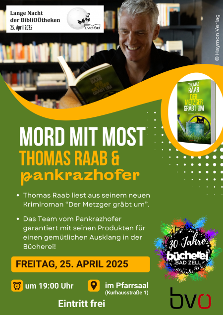 die Bücherei Bad Zell lädt euch herzlich zu einem besonderen Abend voller Spannung und Genuss ein. Im Rahmen der Langen Nacht der BibliOÖtheken erwartet euch ein literarisches Highlight: