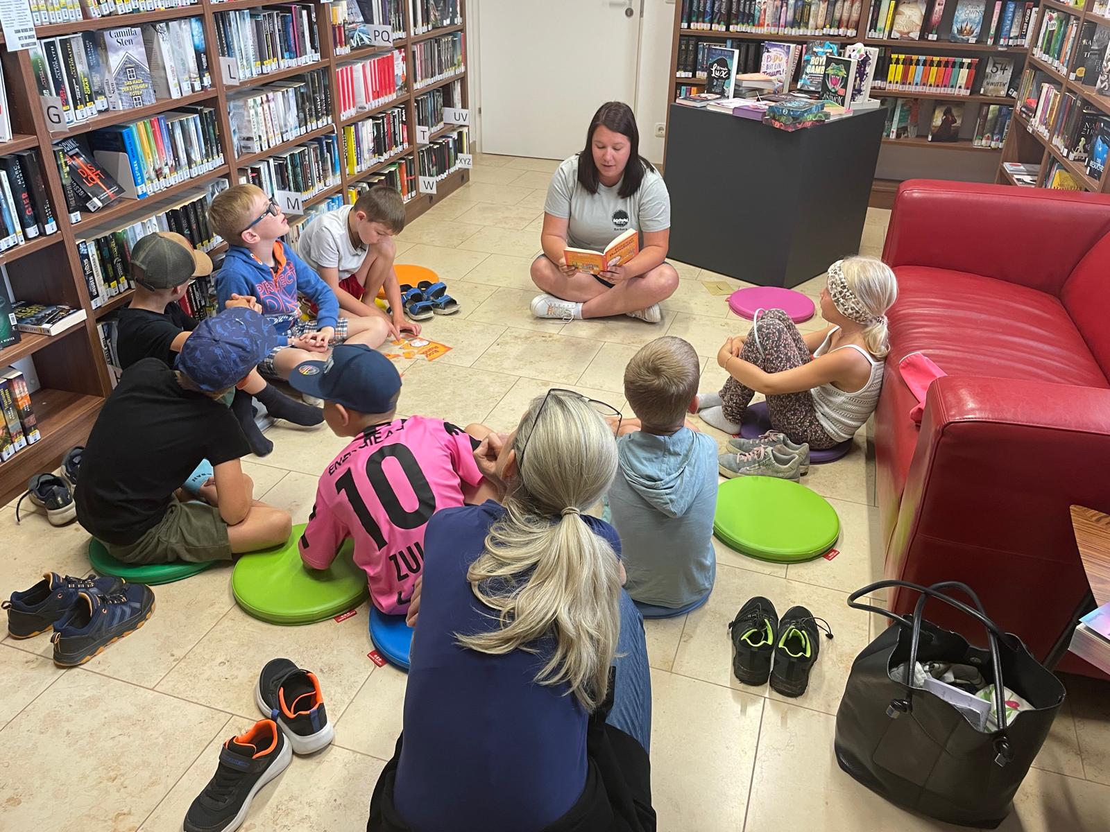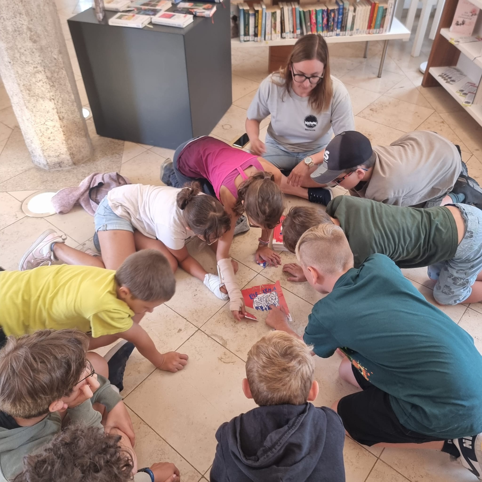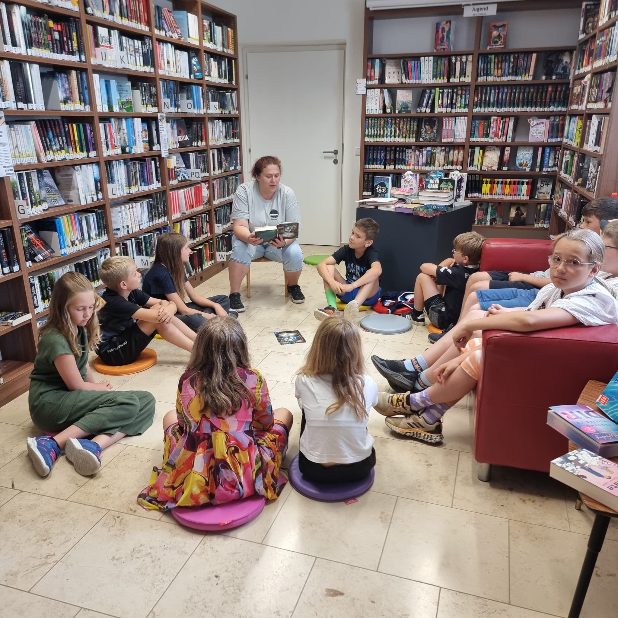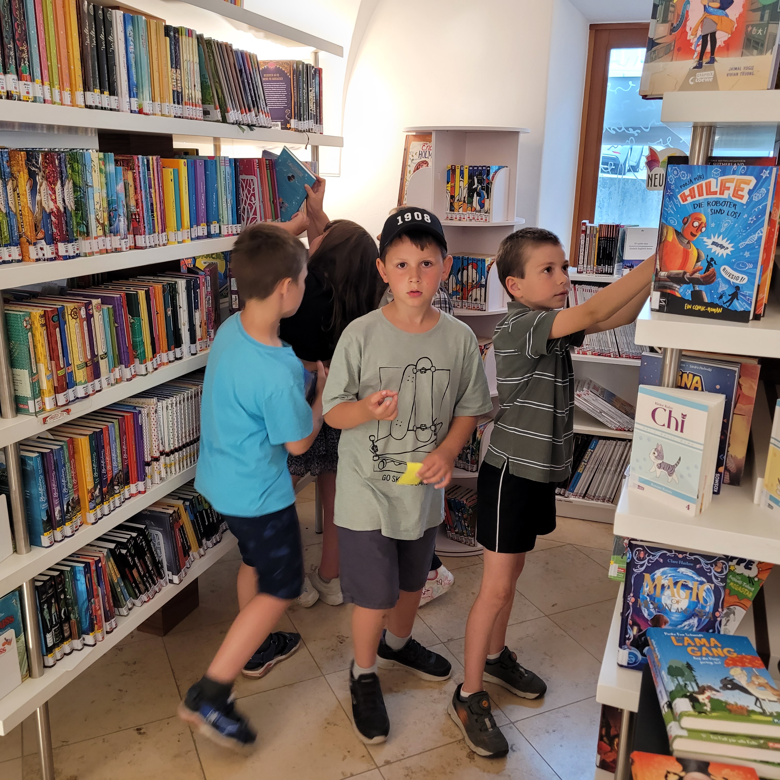 Vor und nach dem Workshop besuchten uns die Schüler:innen in der Bücherei. In Kleingruppen stellten wir passende Buchserien vor – danach durfte selbstständig gestöbert und ein Lieblingsbuch für die Sommerleseaktion ausgewählt werden. Denn nächste Woche mit Ferienbeginn fällt der Startschuss für unsere kostenlose Leseaktion für Kinder!