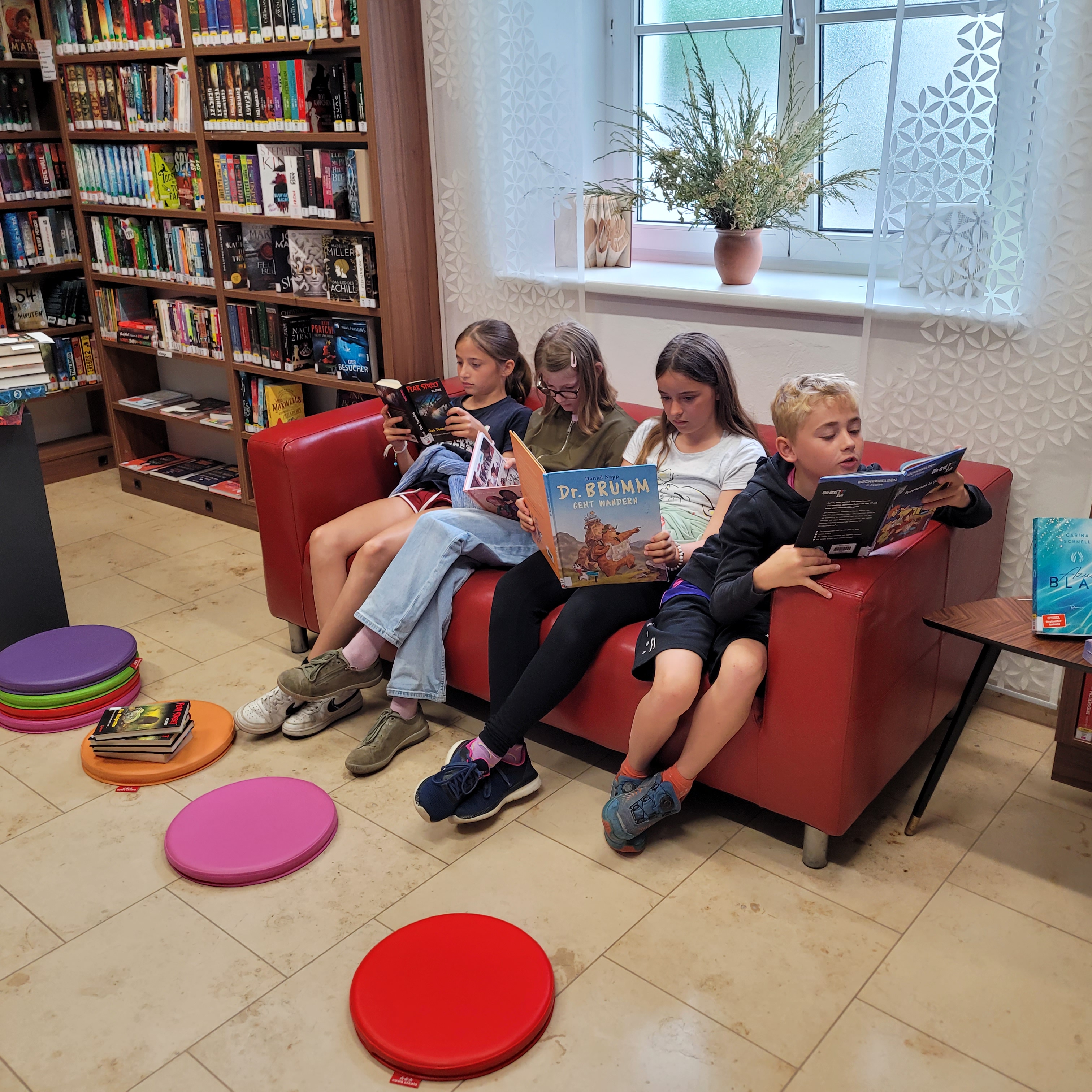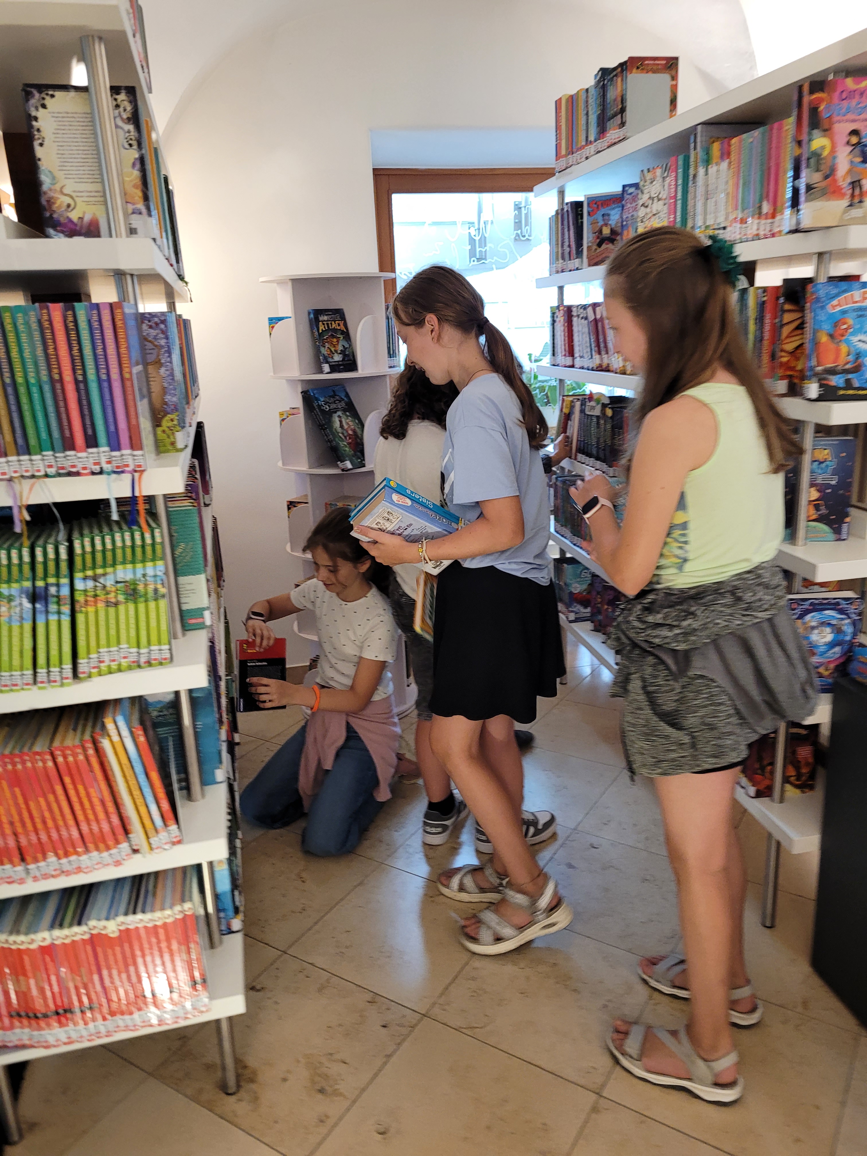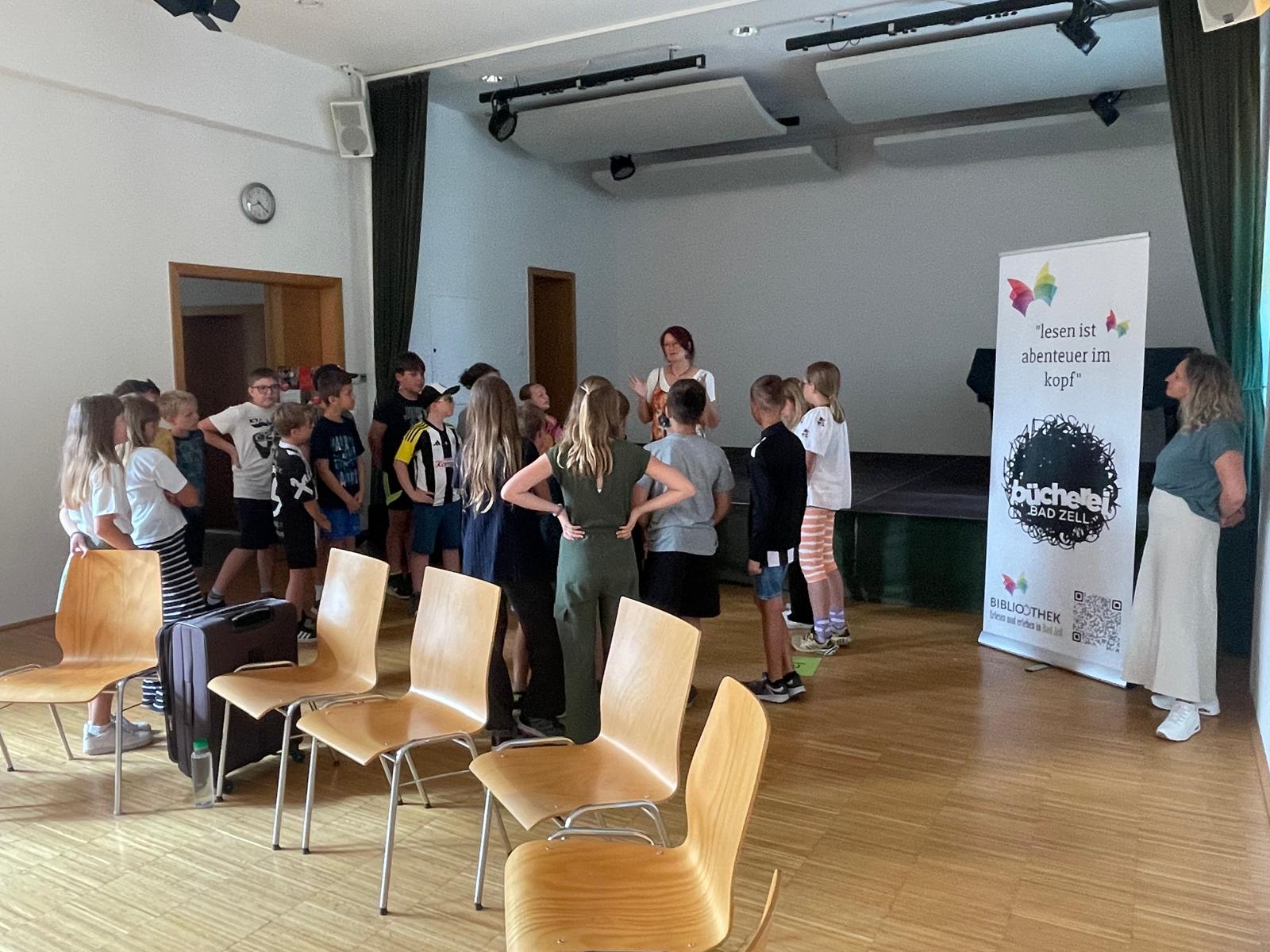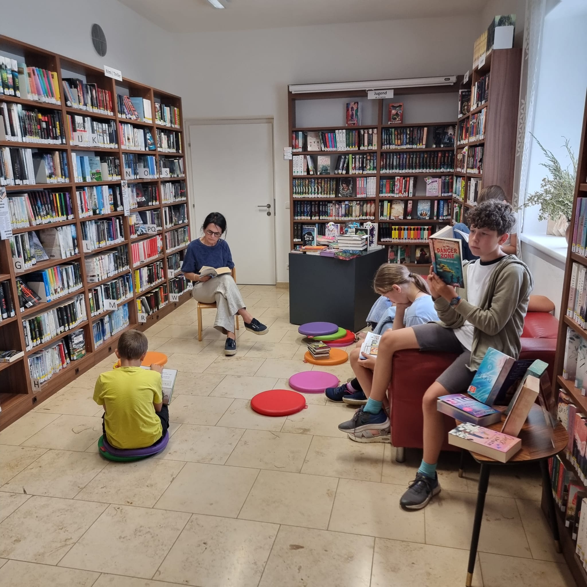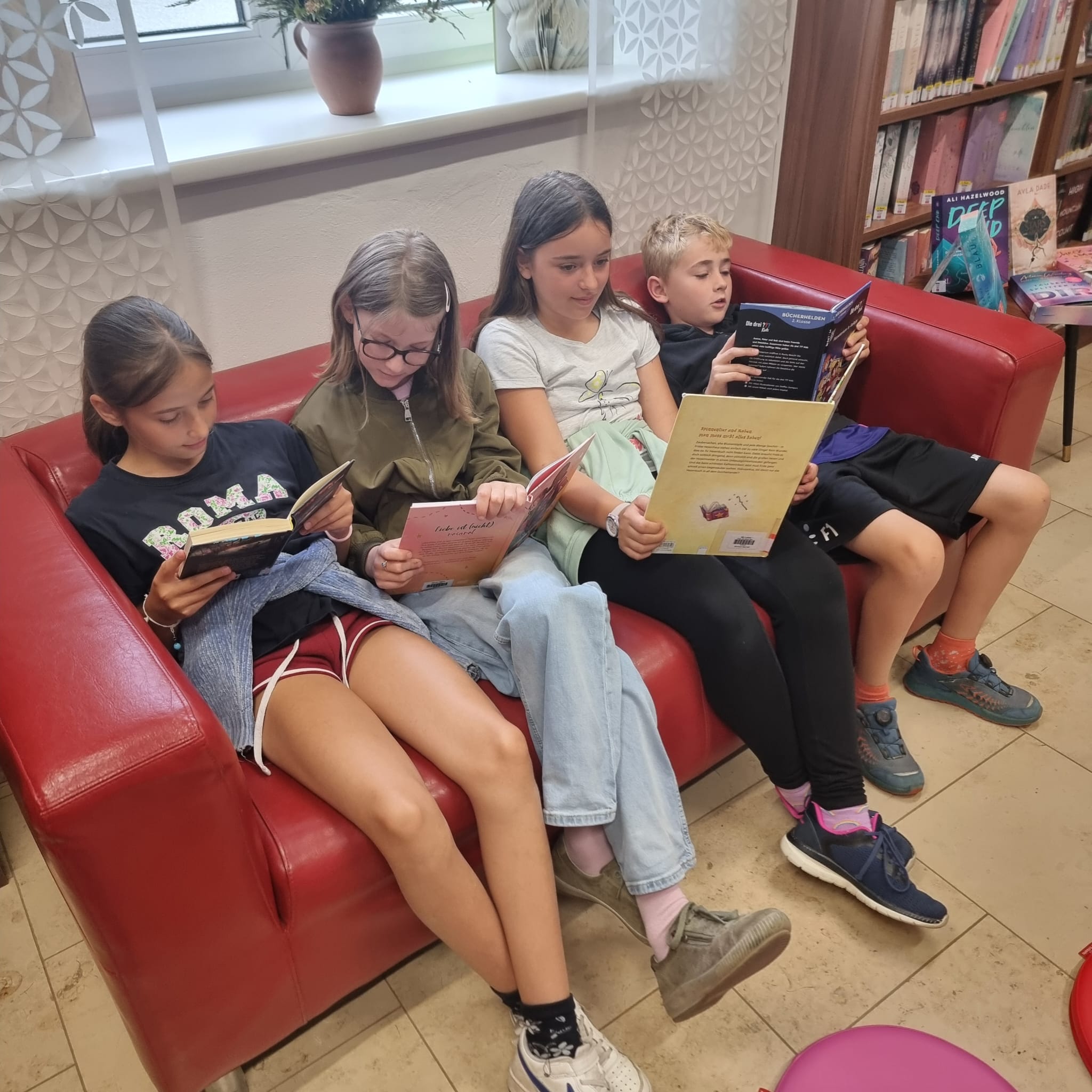 Vor und nach dem Workshop besuchten uns die Schüler:innen in der Bücherei. In Kleingruppen stellten wir passende Buchserien vor – danach durfte selbstständig gestöbert und ein Lieblingsbuch für die Sommerleseaktion ausgewählt werden. Denn nächste Woche mit Ferienbeginn fällt der Startschuss für unsere kostenlose Leseaktion für Kinder!