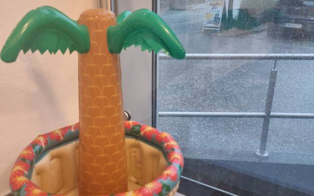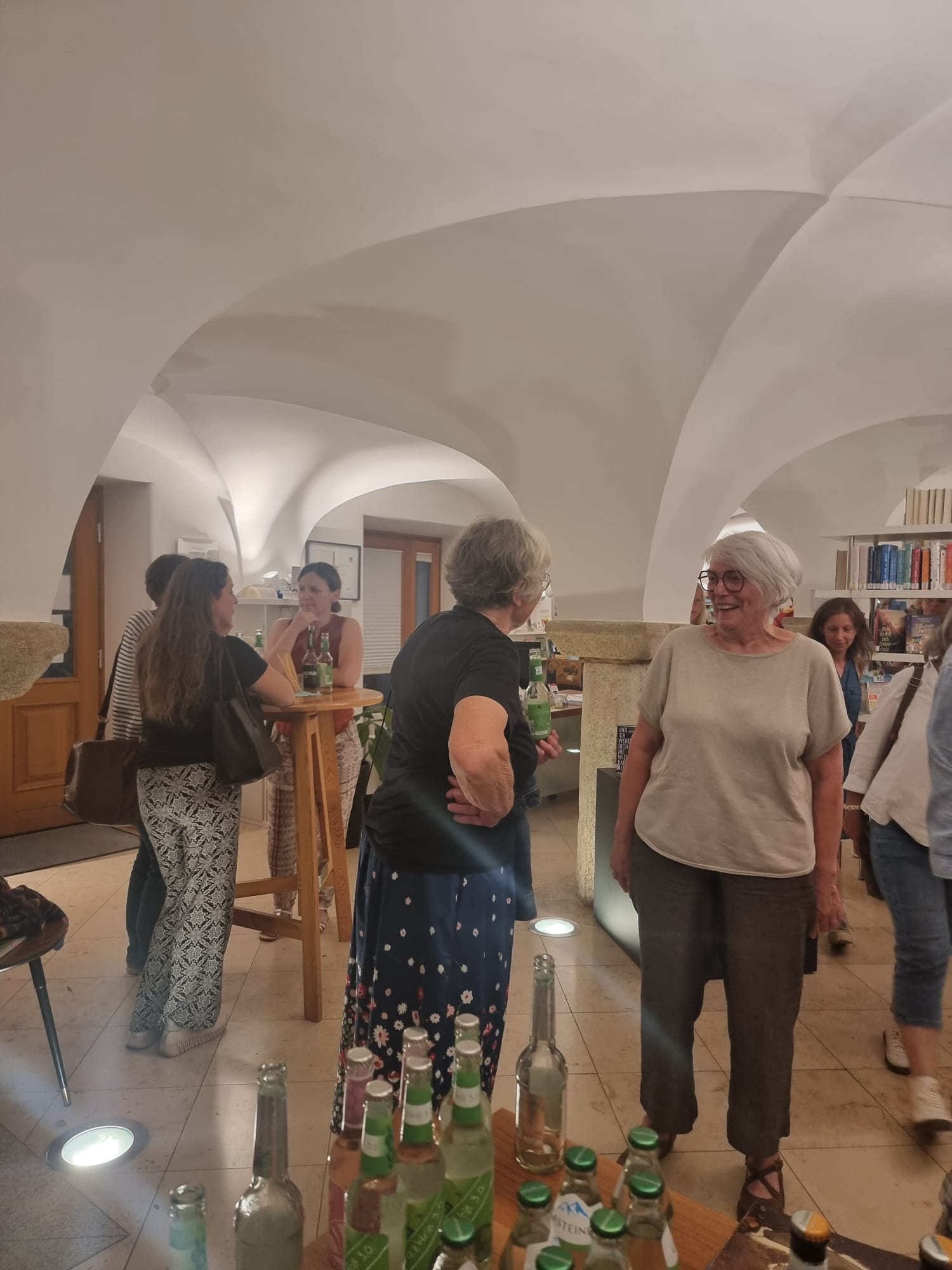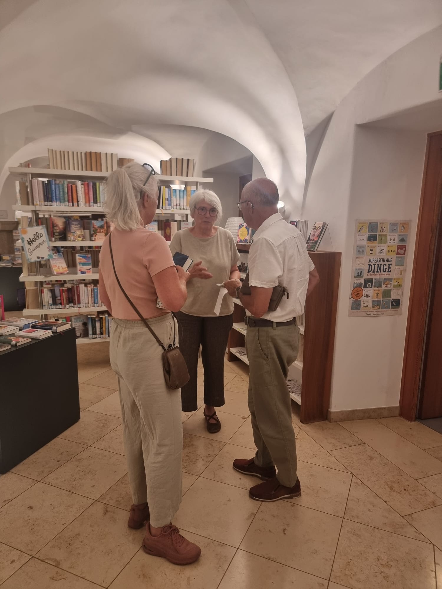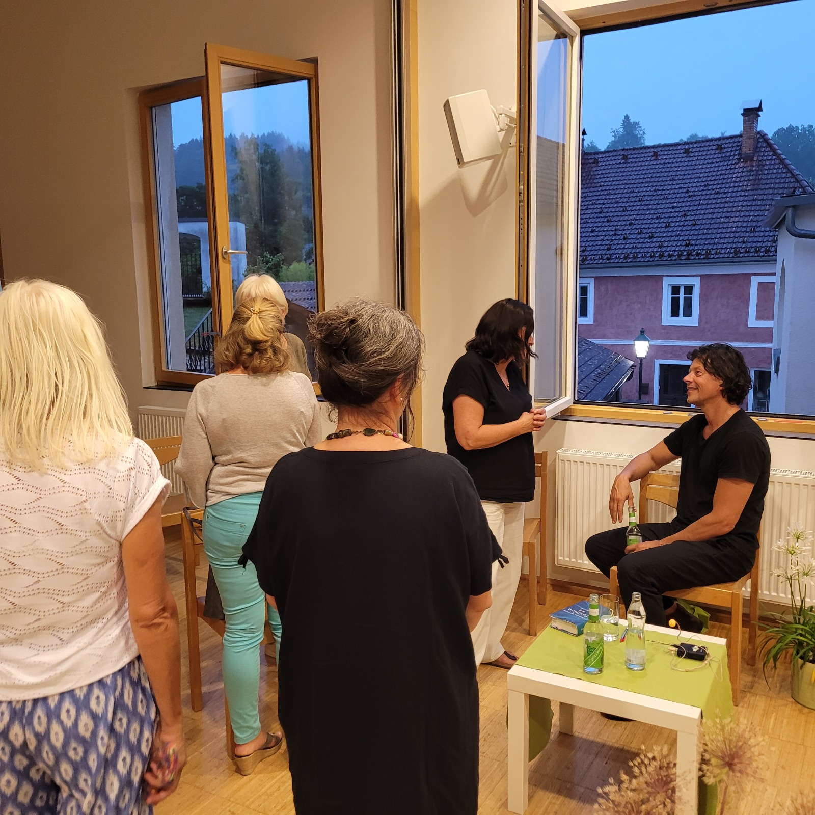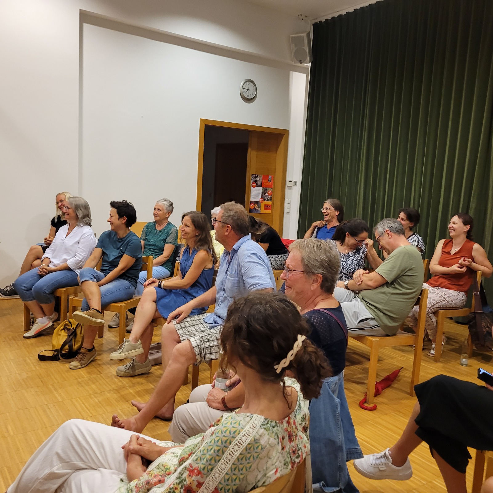 Ursprünglich war eine stimmungsvolle Lesung am Badeteich geplant – doch das Wetter machte uns einen Strich durch die Rechnung. Doch wer dachte, der Abend sei damit ins Wasser gefallen, irrte gewaltig! Über 50 Gäste, teils von weit her angereist, fanden sich kurzerhand im Pfarrsaal ein. Bei tropischen Temperaturen und kühlen Getränken lauschten wir Thomas Sautners Worten, während draußen der Regen prasselte, Gewittergrollen zu hören war und Blitze die Szene dramatisch beleuchteten.