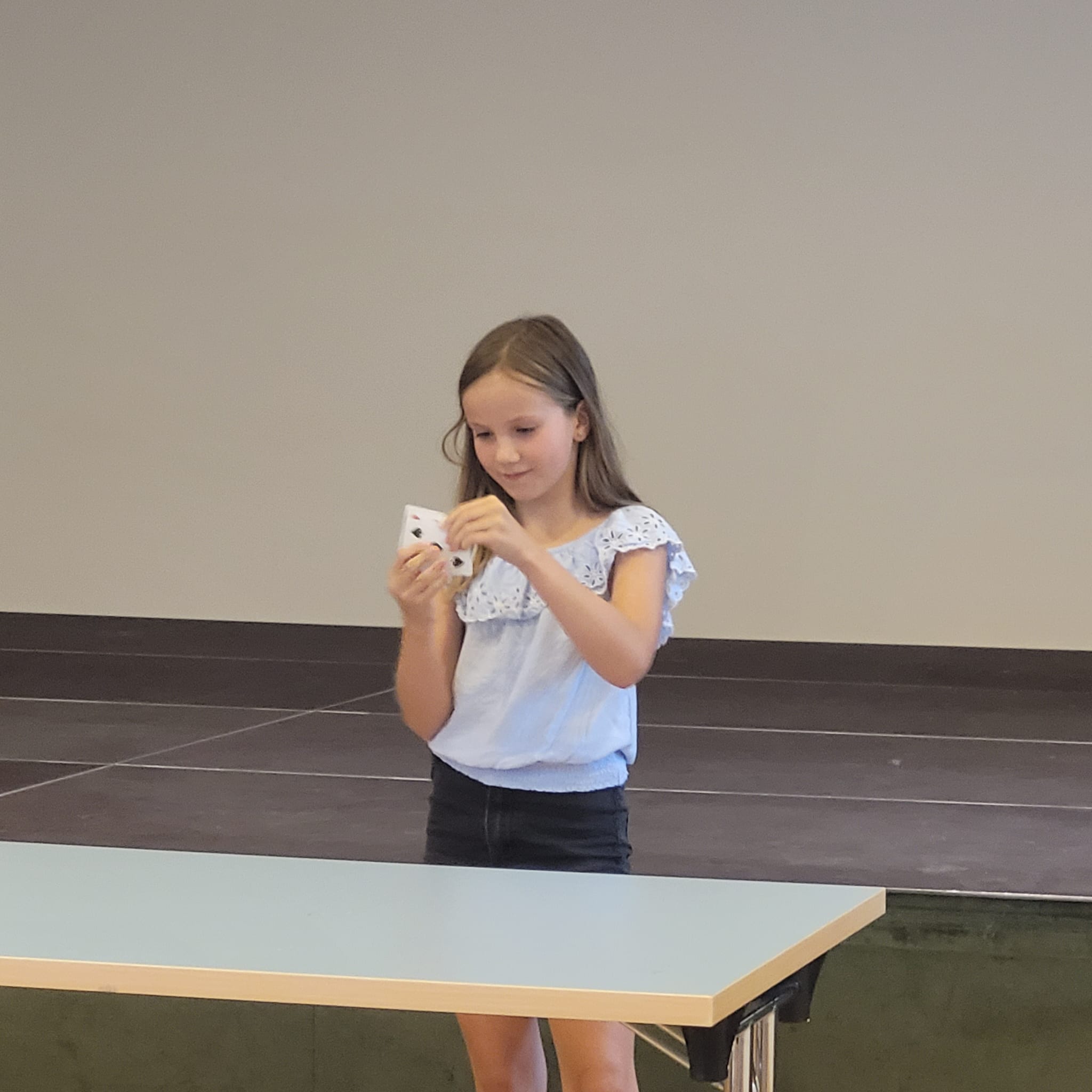 Zum Abschluss gab es eine kleine Zaubershow für die Eltern, bei der die jungen Magier:innen stolz ihr Können präsentierten. Der Funke ist übergesprungen – man sah strahlende Gesichter, verblüffte Erwachsene und viel Applaus!