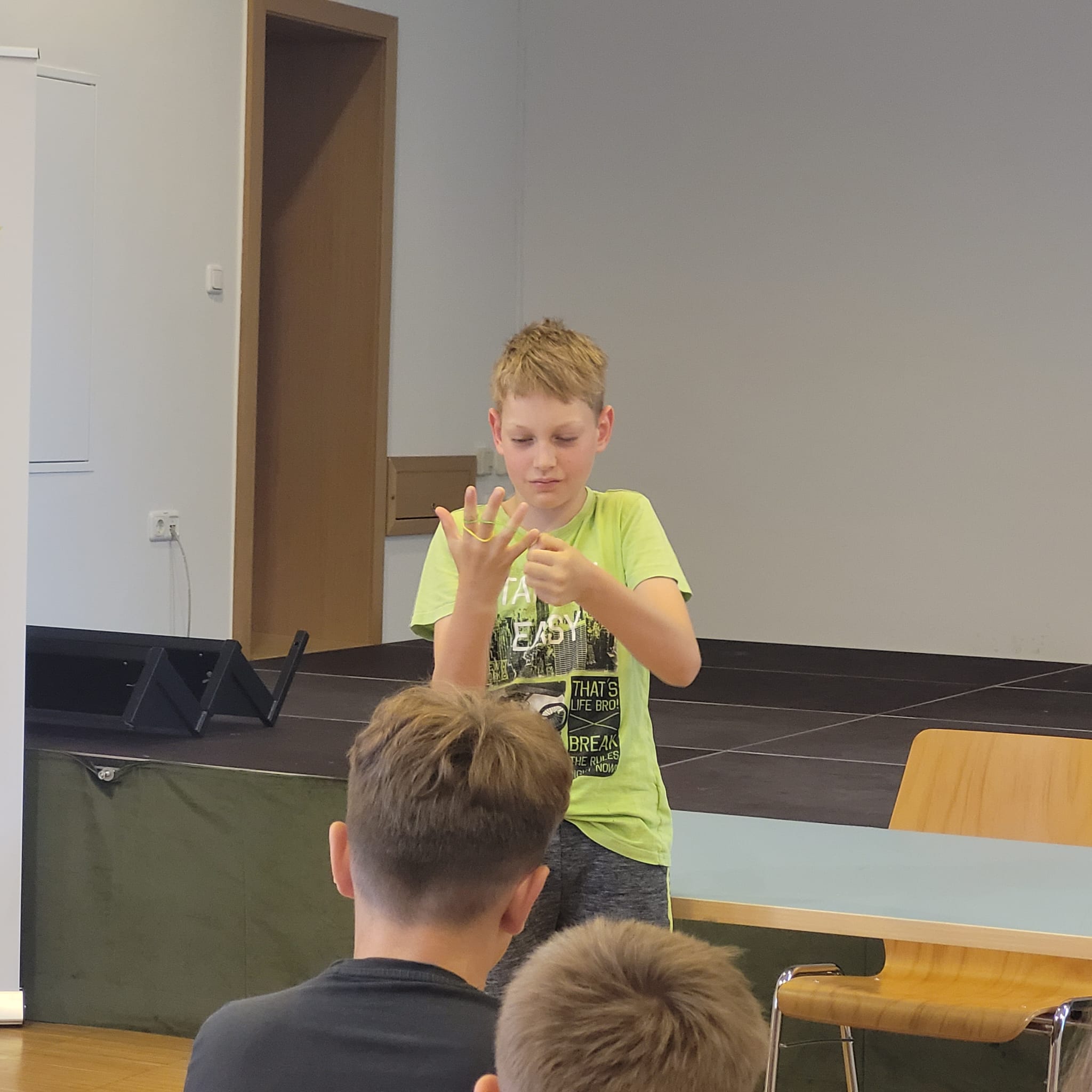Mit alltäglichen Gegenständen wie Gummibändern, Münzen oder Spielkarten brachte Maguel die Kinder zum Staunen – und zeigte ihnen Schritt für Schritt, wie man selbst zum kleinen Zauberkünstler wird. Rund sechs coole Tricks wurden gemeinsam gelernt und fleißig geübt. Besonders schön: Jedes Kind durfte seinen Lieblingstrick perfektionieren.