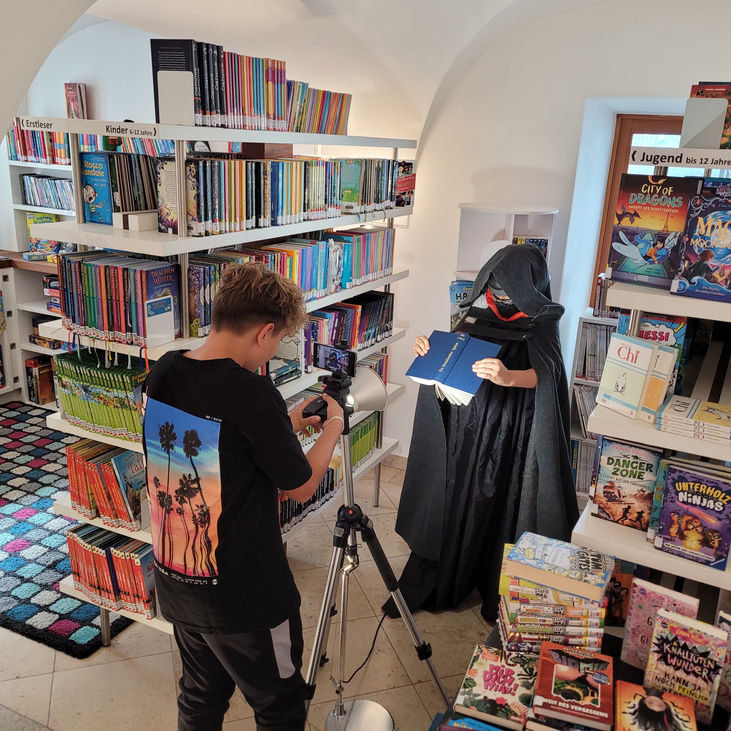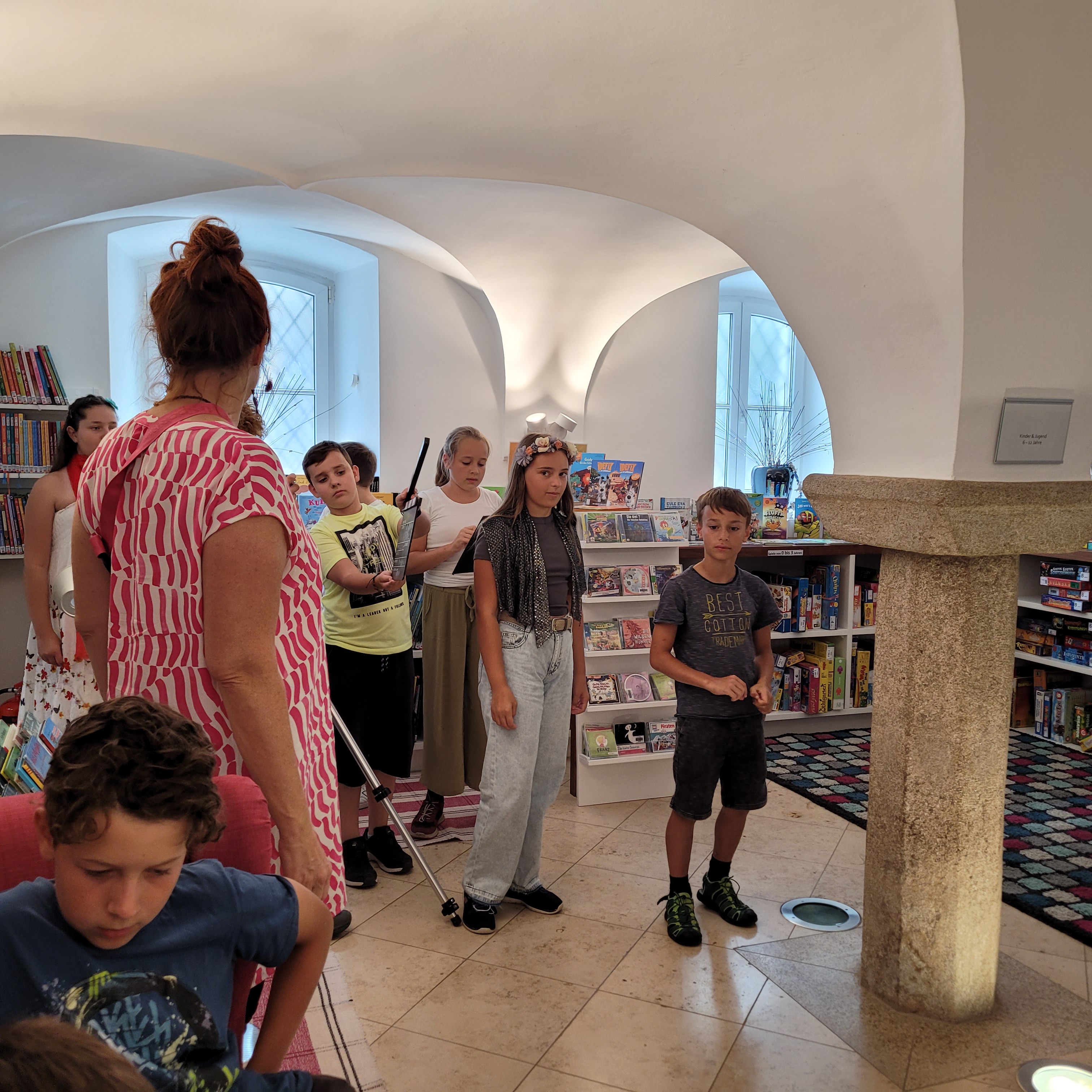 Am 22. August verwandelte sich die Bücherei Bad Zell in ein Filmstudio: 13 Kinder entwickelten gemeinsam mit den Profis vom Filmstudio Nautikuss den Kurzfilm „Buch mit Fluch“.