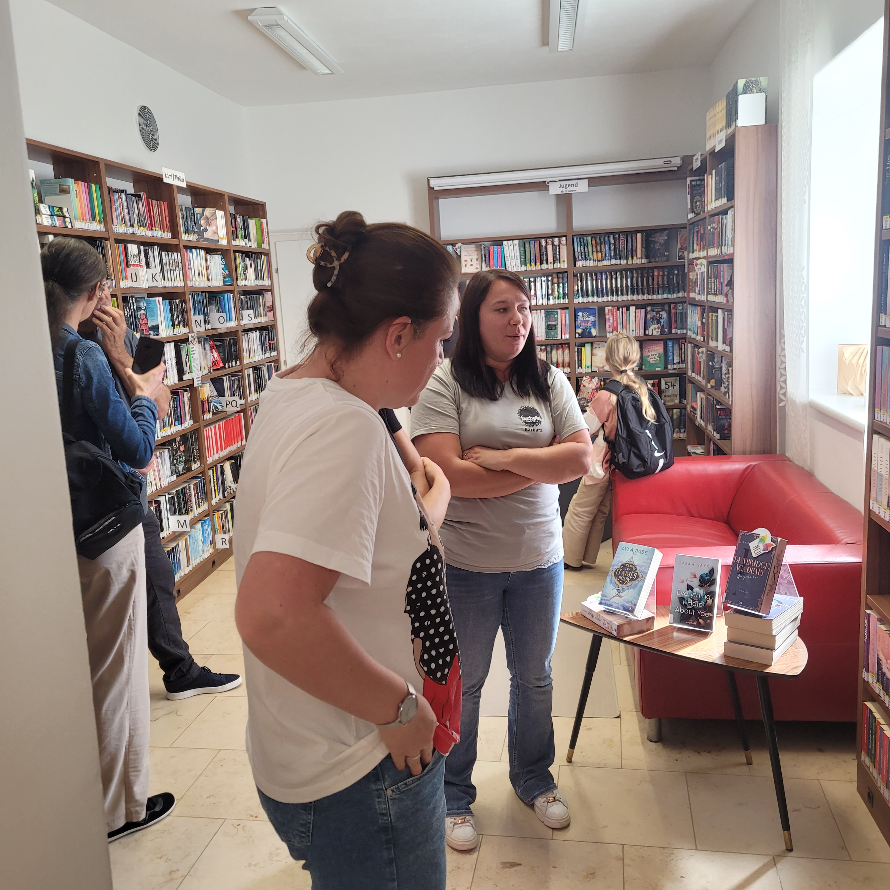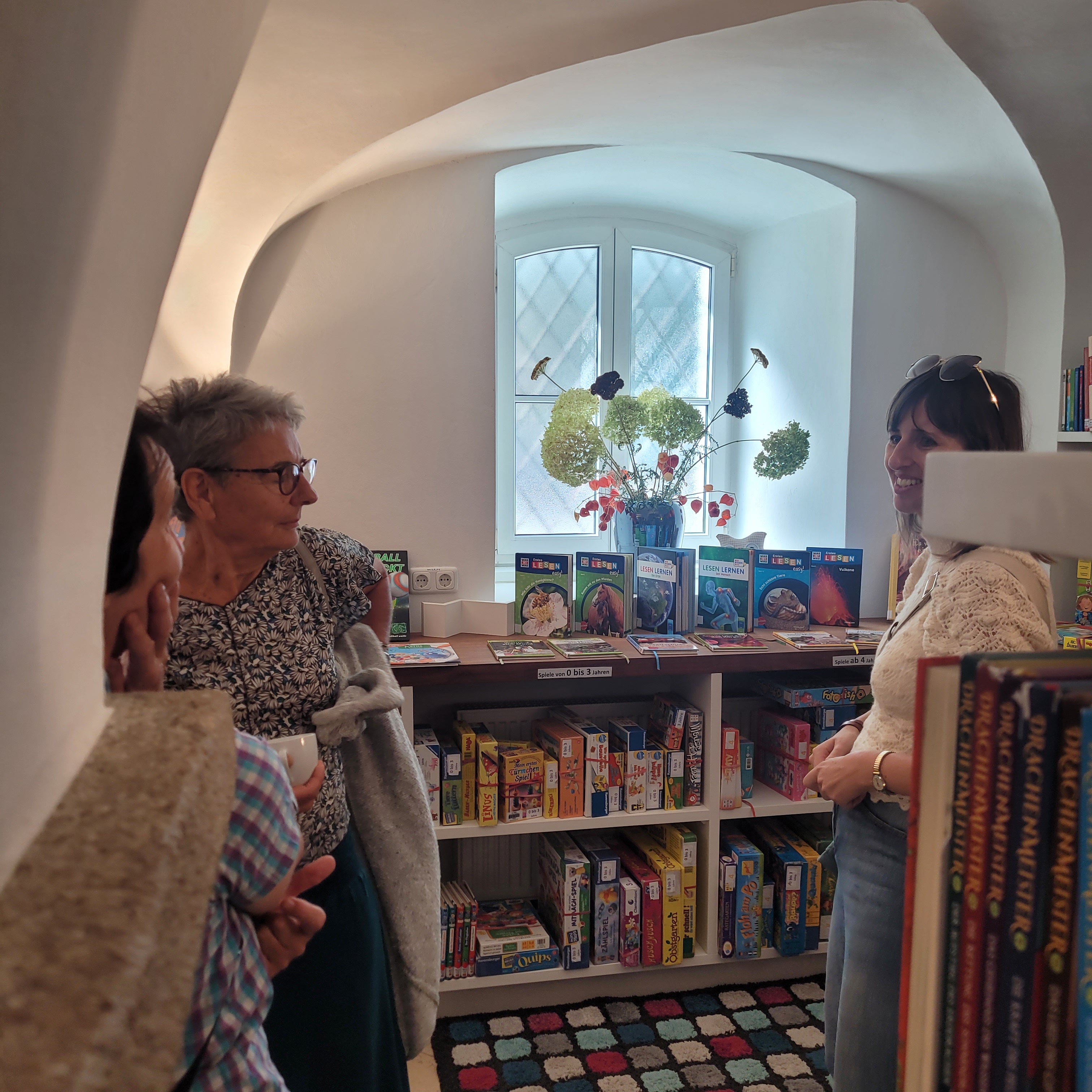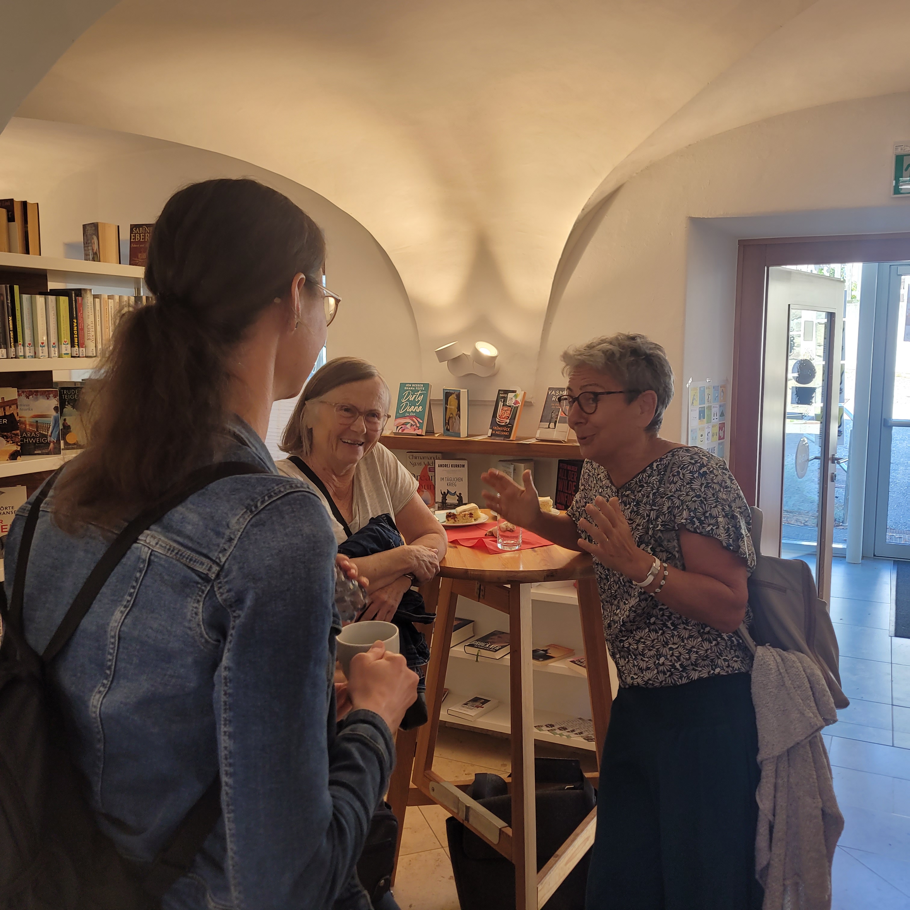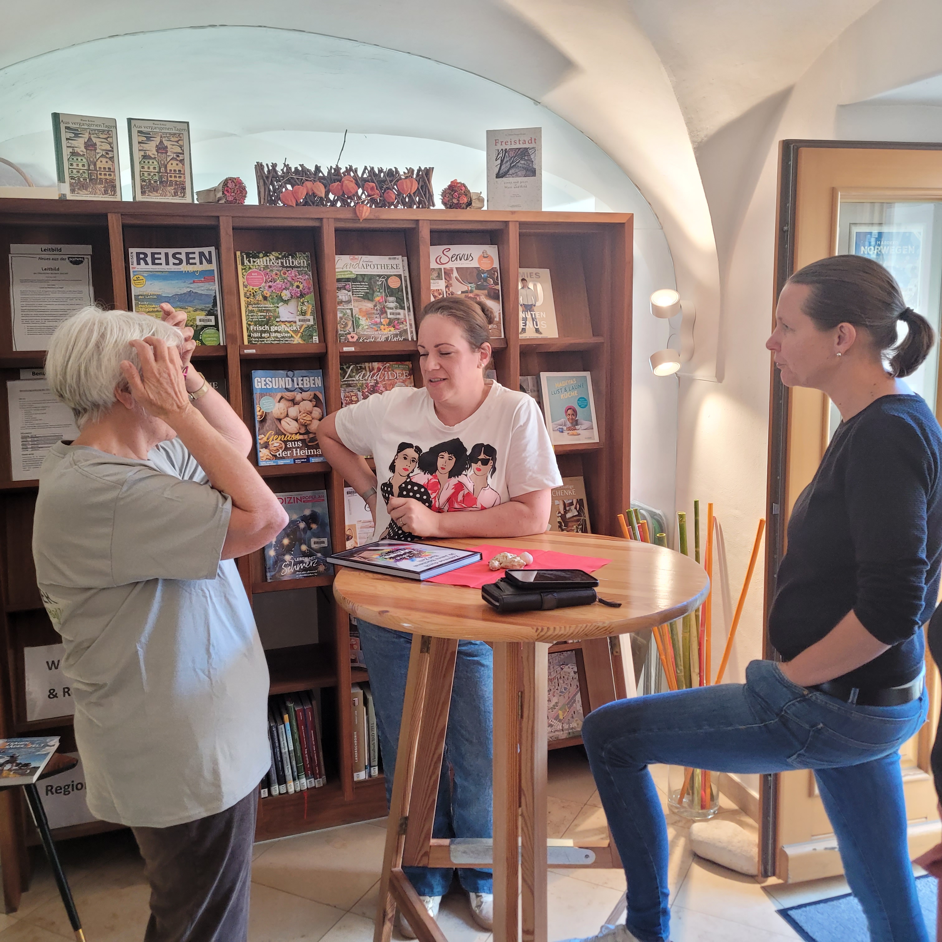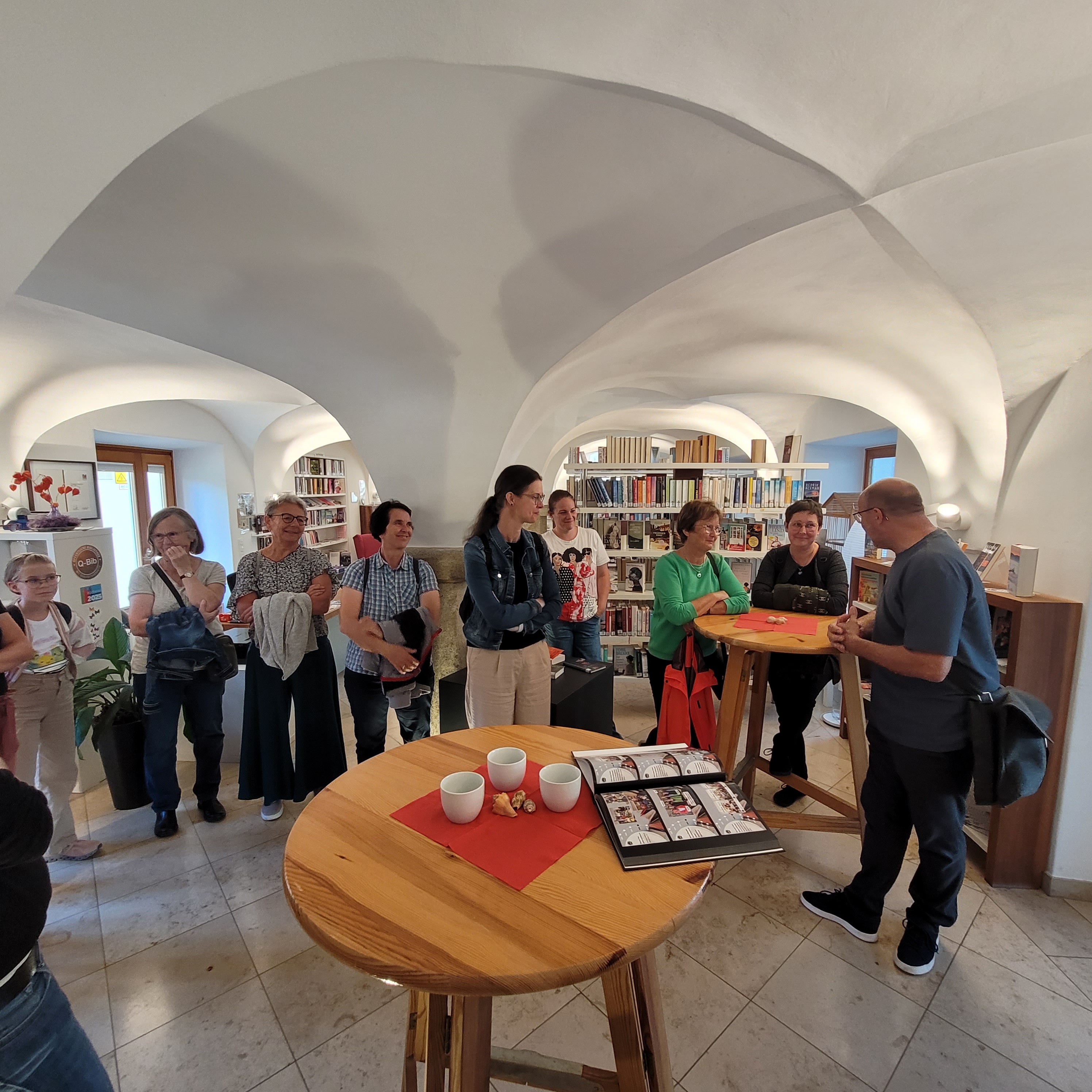 Heute Vormittag war die Bücherei Neumarkt bei uns zu Besuch – ein bunter Hühnerhaufen mit ihrem Chef als Hahn im Korb. Es wurde geplaudert, gefragt und ausgetauscht. Ein unglaublich sympathisches und topmotiviertes Team brachte Leben in unsere Räume, und so vergingen die zwei Stunden wie im Flug. Beim anschließenden Schnitzel haben die Kolleg:innen bestimmt gleich viele neue Pläne geschmiedet. In ein, zwei Jahren starten wir einen Gegenbesuch und freuen uns schon jetzt auf ein Wiedersehen mit dieser tollen Truppe!