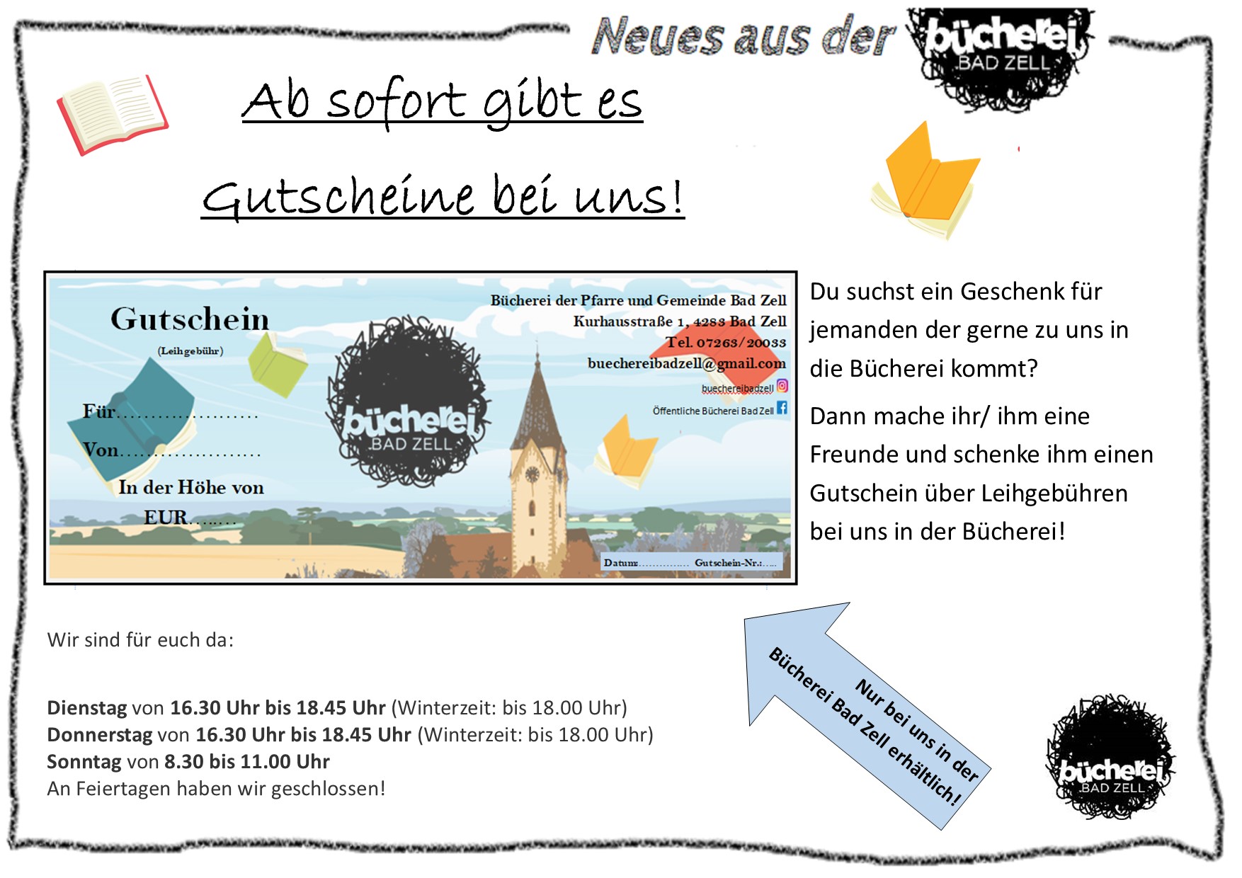 Wir haben es getan! Ab Ende November gibt es von unserer Bücherei Gutscheine zu kaufen!