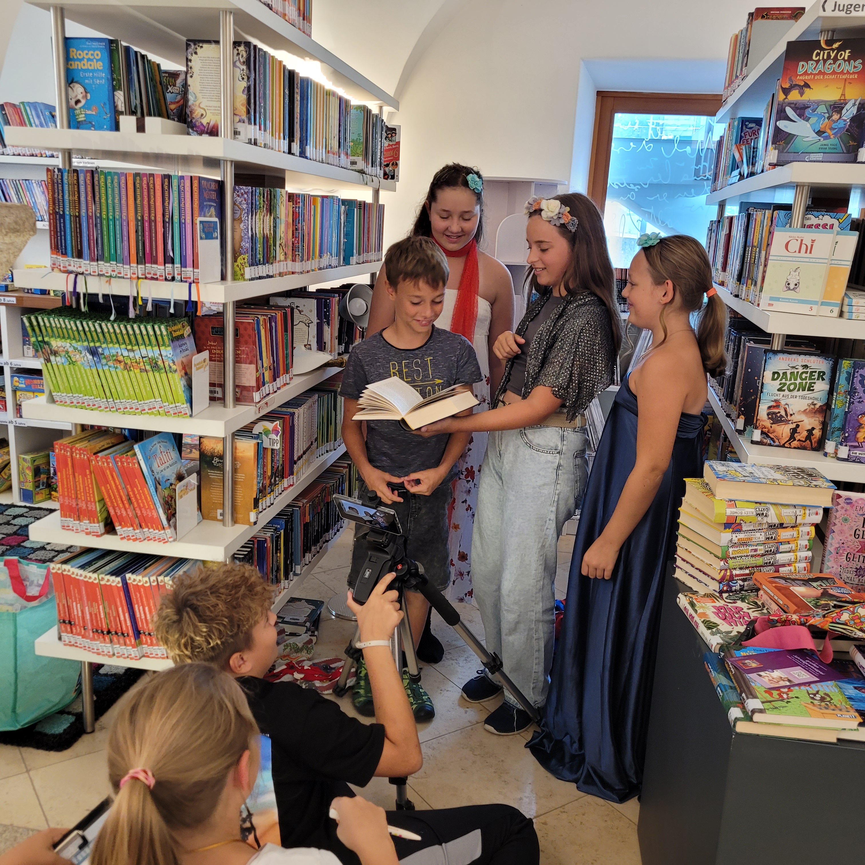 13 junge Filmemacher:innen haben am 22. August ihren eigenen Kurzfilm „Buch mit Fluch“ gedreht – voller Spannung, Kreativität und ganz viel Spaß in unserer Bücherei!